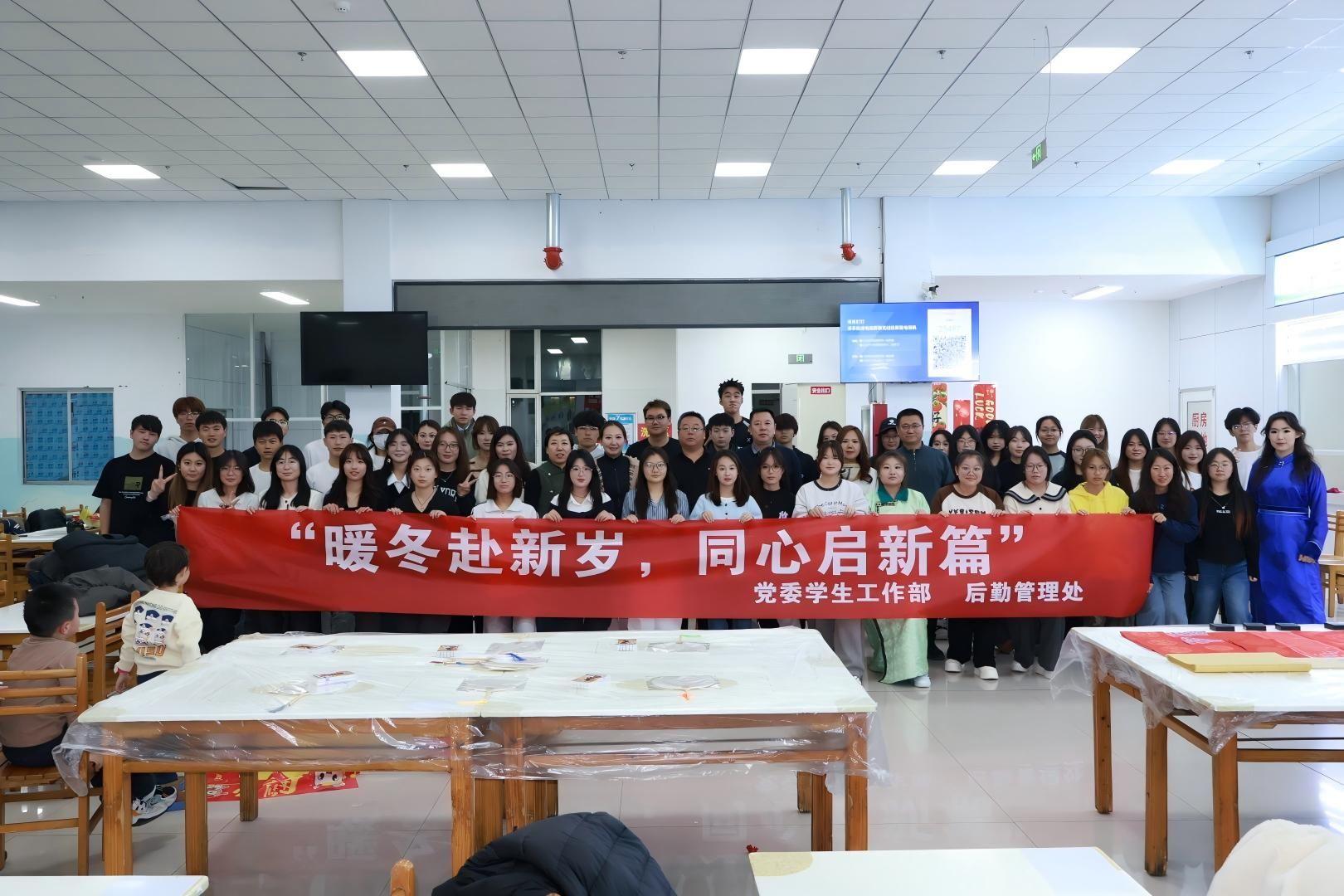 岁末将至,新元肇启。为迎接元旦,由学生工作部和后勤管理处联合举办“暖冬赴新岁 同心启新篇”迎元旦包饺子活动,于12月23日晚在北食堂温情启幕。百余名师生欢聚一堂,以劳动实践共绘冬日温馨画卷。活动现场暖意融融,在后勤师傅的悉心指导下,师生们分工协作:揉面的同学将新年期盼揉进面香,擀皮的老师铺展新岁蓝图,初学的同学在伙伴帮助下认真捏褶,把憧憬裹进饺馅。不一会儿,形态各异的饺子摆满托盘,每一个都承载着欢声...