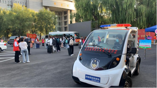 9月10日保卫人员进行了校门防疫设施设备的布置,并出租了6辆巴士、4辆越野作为护送新生入校的爱心服务车。次日,新生报到开始,保卫人员于早上6点便到了各自岗位,并对校园各部位进行了细致地检查。新生到来时,保卫人员严格贯彻落实学校的疫情防控制度,守牢校门入口关,按要求检查新生的各类证明、证件并测量其体温。大家始终保持着高涨的热情,帮助新生托运行李、解决难题、接送新生往来于校园内,虽然忙碌而辛苦,但每个人都积极踊跃地投身到迎新工作中。