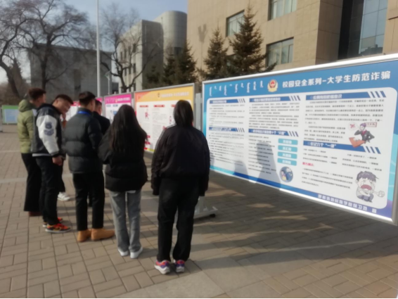 活动邀请了海东派出所、八一交警队警官在校园天骄广场就交通安全法、治安处罚法等法律内容为师生进行了现场宣讲;展出国家安全、反邪教、防诈骗、消防安全、交通安全及平安校园建设等内容的系列图片展板27块,发放《大学生安全须知》、《崇尚科学文明抵制邪教迷信》、《校园诈骗的主要手段及预防措施》、《师生交通安全须知》、《珍爱生命拒绝毒品》等相关内容的宣传单5000张,宣传手册1000本。此外还利用校园网,微信平台等媒介,广泛宣传了安全知识。