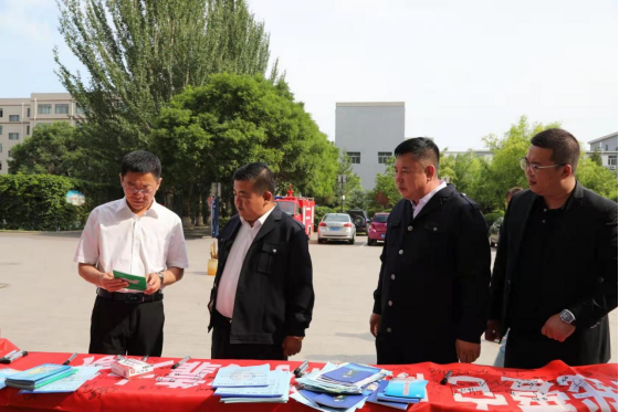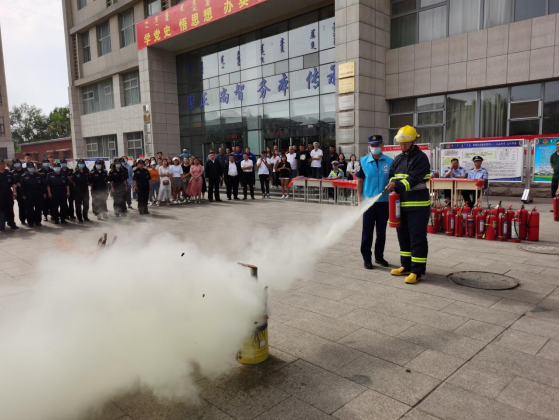 2021年的6月是全国第20个安全生产月,6月16日是全国安全宣传咨询日。为全面贯彻落实教育厅及学校关于“安全生产月”的指示精神,推进平安、和谐、稳定校园的创建,进一步提高校内师生安全生产、安全应急方面的知识与技能,beat365英国官方网站保卫处结合党史学习教育,于6月15日邀请到内蒙古消防协会、新城区消防、新城区交警队、新城区公安局、新城区网络安全大队、海东路党工委、海东路派出所、龙护卫安保公司、鹰戟蓝消防维保公司、内蒙古仁和物业,在学生处、后勤管理处的协助下开展了安全生产月宣传教育活动。副校长高喜天、学校各处室负责人、二级学院书记院长出席了活动、消防领导小组成员、学生干部、宿舍长积极响应参与了活动。