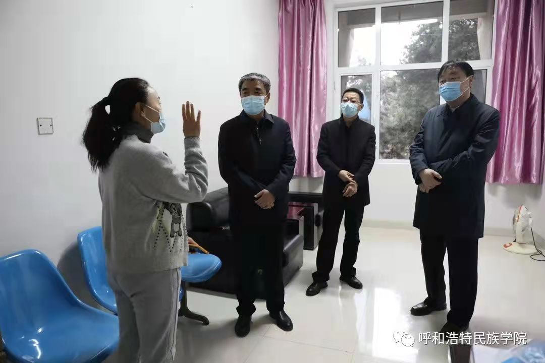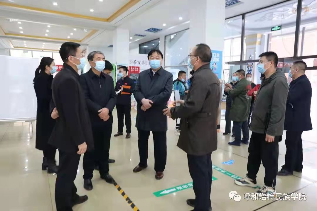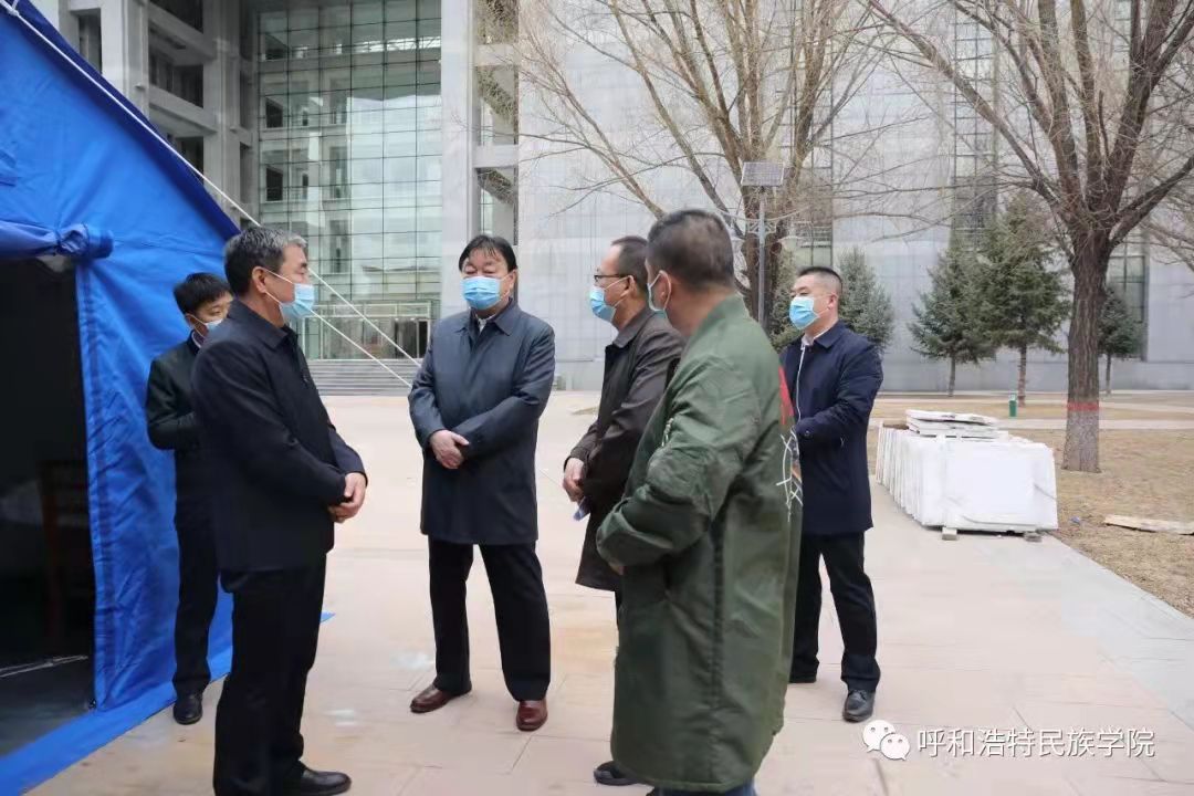 3月28日下午,学校党委书记格日乐图,党委副书记、校长乔彪,党委副书记胡春梅,副校长纳丽娜,纪委书记王冬梅,副校长高喜天深入基层一线,调研指导校园疫情防控工作。党政办公室、党委宣传部、纪委监察专员办公室、学生工作部、教务处、后勤处、保卫处负责同志陪同调研。