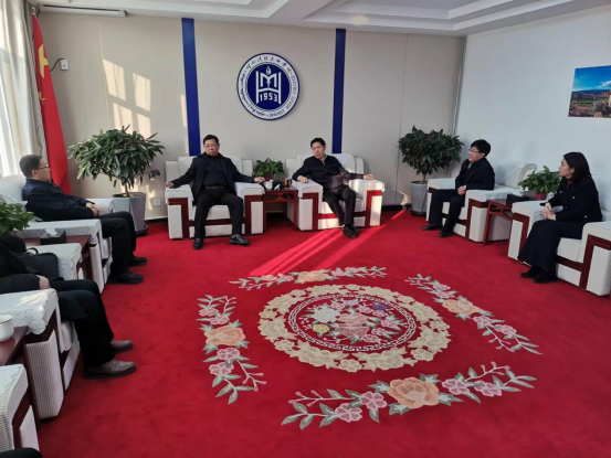 校党委书记刘九万,党委副书记、校长韩伟新,副书记格根哈斯等领导会见了检查组王百涛一行,对检查组一行表示热烈欢迎,就校园安全工作进行了交流。