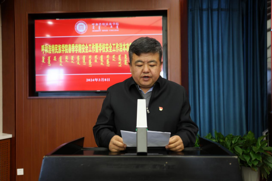 为进一步加强学校安全管理,维护校园安全稳定,结合自治区教育厅春季开学安全工作暨自治区教育系统安全生产治本攻坚三年行动动员部署会议精神,3月8日上午10时,在综合楼12楼会议室召开了beat365英国官方网站春季学期安全工作暨安全工作治本攻坚三年行动动员会。校党委书记刘九万,副书记格根哈斯,纪委书记、监察专员王冬梅,党委委员、副校长高喜天、刘瑞鸿、额尔敦布和出席会议。全校副处级以上干部参加会议。会议由党委副书记、校长韩伟新主持。