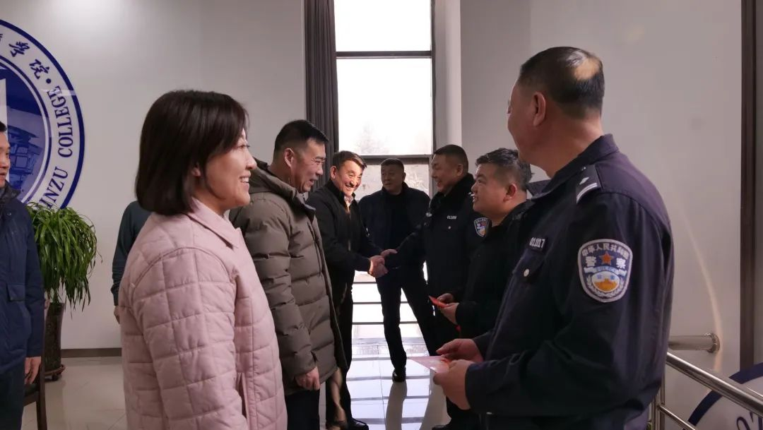 慰问组一行对警务人员的辛勤付出表示感谢,并致以诚挚问候和新春祝福。张俊喜要求,高校要加强与公安部门合作,不断规范高校警务室建设,建立警情联合检查、防范宣传、快速反应、联动处置、辐射周边和智慧警务等工作机制,以共建、共治、共享为原则,努力实现校园安全管理服务全天候、零距离的工作目标,营造一个“让家长放心、让学生静心、让教师安心”的校园环境。