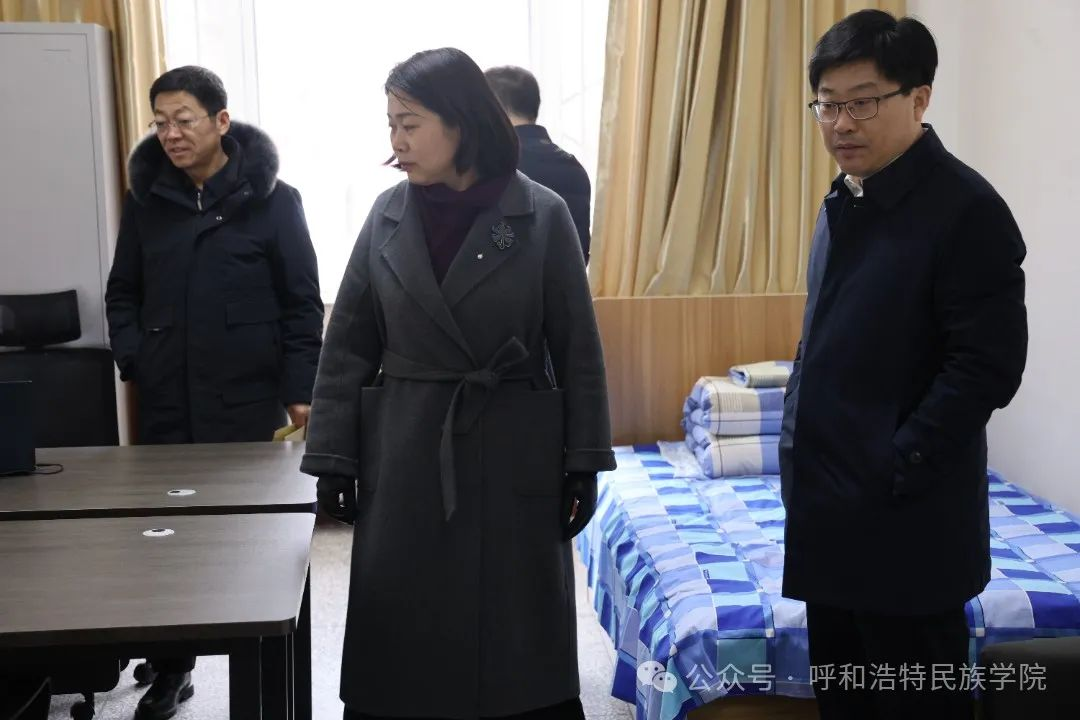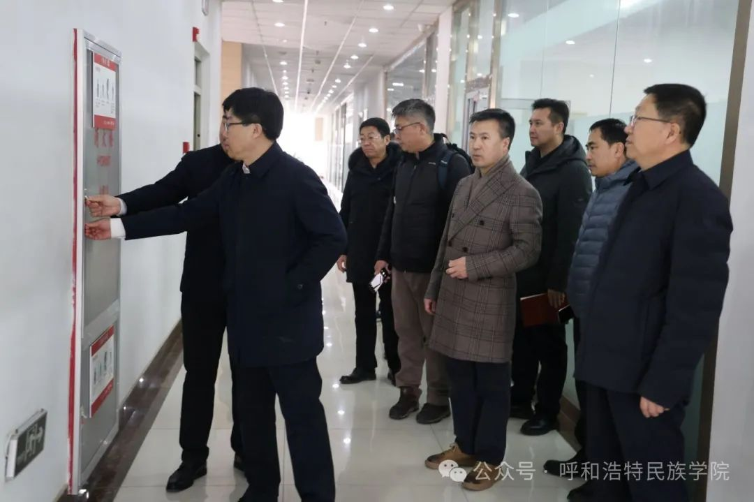 校园安全是一切工作的基础和前提,为进一步做好新学期校园安全管理工作,消除潜在安全隐患,把校园安全工作做实做细,切实筑牢校园安全防线。2月26日,校党委书记刘九万,党委副书记、校长韩伟新,党委副书记格根哈斯,党委委员、副校长高喜天,党委委员、副校长刘瑞鸿,党委委员、副校长额尔敦布和等校领导一行对校园内重点场所进行了安全督导检查。