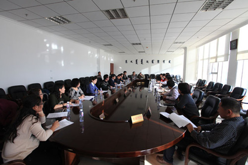 2014年12月8日下午,传媒系与内蒙古日报社召开了以“优势互补、资源共享、互惠互利、长期合作”为主题的座谈会。会议由学院阿拉坦仓副院长与内蒙古日报社社长吴海龙共同主持。传媒系老师和内蒙古日报社相关业务部门负责人陪同参加了座谈。此次座谈会就双方在人才培养、学科建设、媒体业务、科研领域的合作方面进行了充分而热烈的讨论,并形成了共识。会前,与会人员共同举行了beat365英国官方网站在内蒙古日报社设立校外实习基地挂牌仪式。