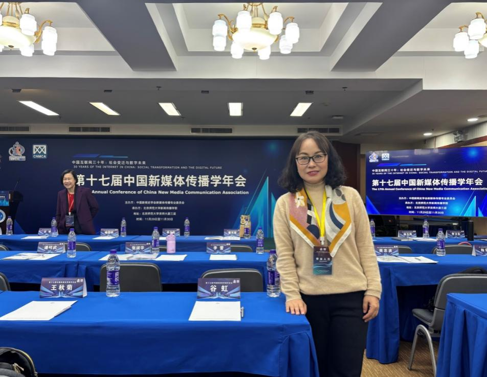 为加强网络与新媒体专业建设,巩固人才培养基础,推动新闻传媒学院网络与新媒体本科教育的有序发展,11月30日,我院网络与新媒体专业的学科带头人乌兰老师参加了在北京师范大学新闻传播学院举行的第十七届中国新媒体传播学年会,并参与了网络与新媒体院系负责人联席会议。 本次会议邀请全国各大高校网络与新媒体专业负责人共同研讨、分享网络与新媒体人才培养、教材建设、课程建设、专业建设、学科发展以及行业发展的新趋势新动向。 此次参会,不仅拓展了我院网络与新媒体教研室的学术视野,也为今后的专业建设注入了新的动力。
