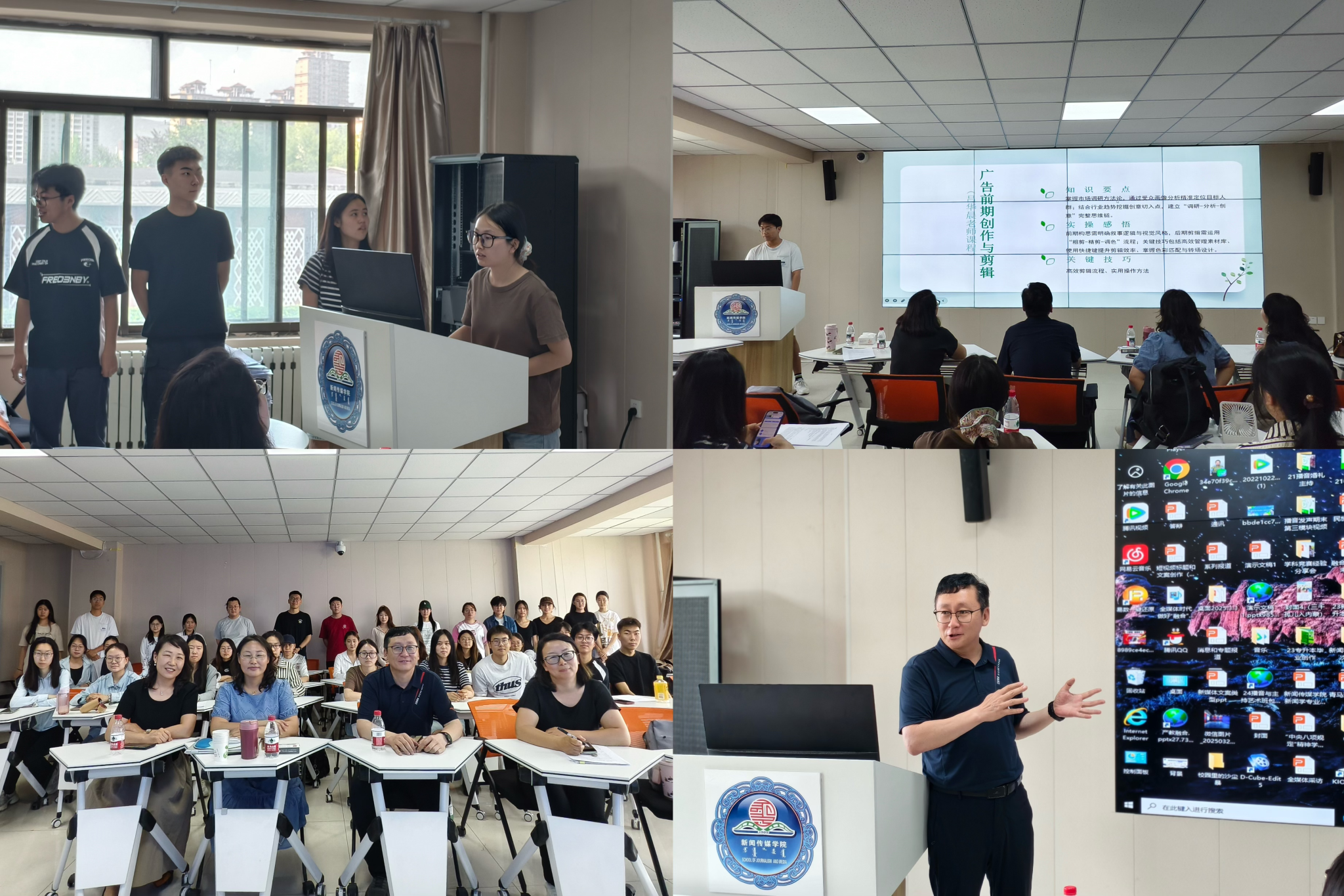 汇报会上,11个小组通过见习总结PPT与作品展映,梳理学习脉络、展示广告成品等核心成果,作品凭借扎实的专业水准获得在场教师的高度认可。额尔敦毕力格院长对见习成果给予高度评价,指出学生通过此次见习实现技能、思维、协作三大突破,充分肯定“校企协同、实战导向”模式在衔接校园与行业中的重要作用。