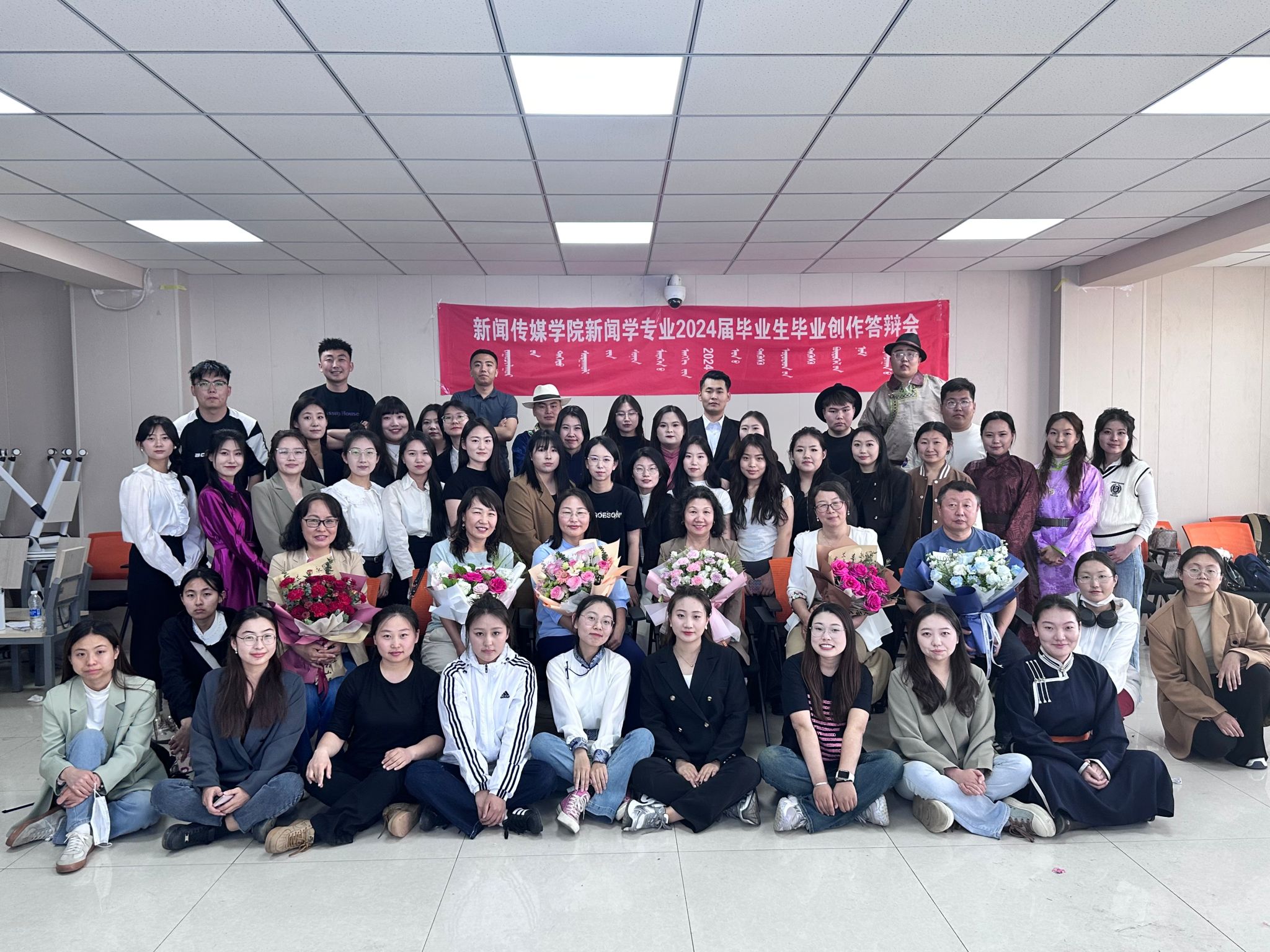 同一天,新闻学(摄影方向)专业的13名学生也展示了他们的26部作品,由额尔敦毕力格院长指导,那木日同学创作的《青城.宴》被评为优秀毕业作品。