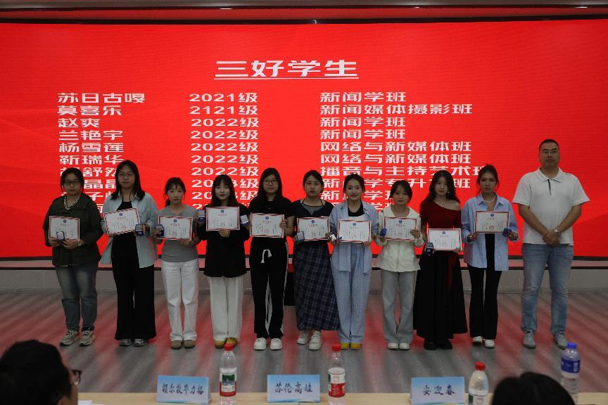 新闻传媒学院教学科研办公室主任阿特尔为三好学生颁奖