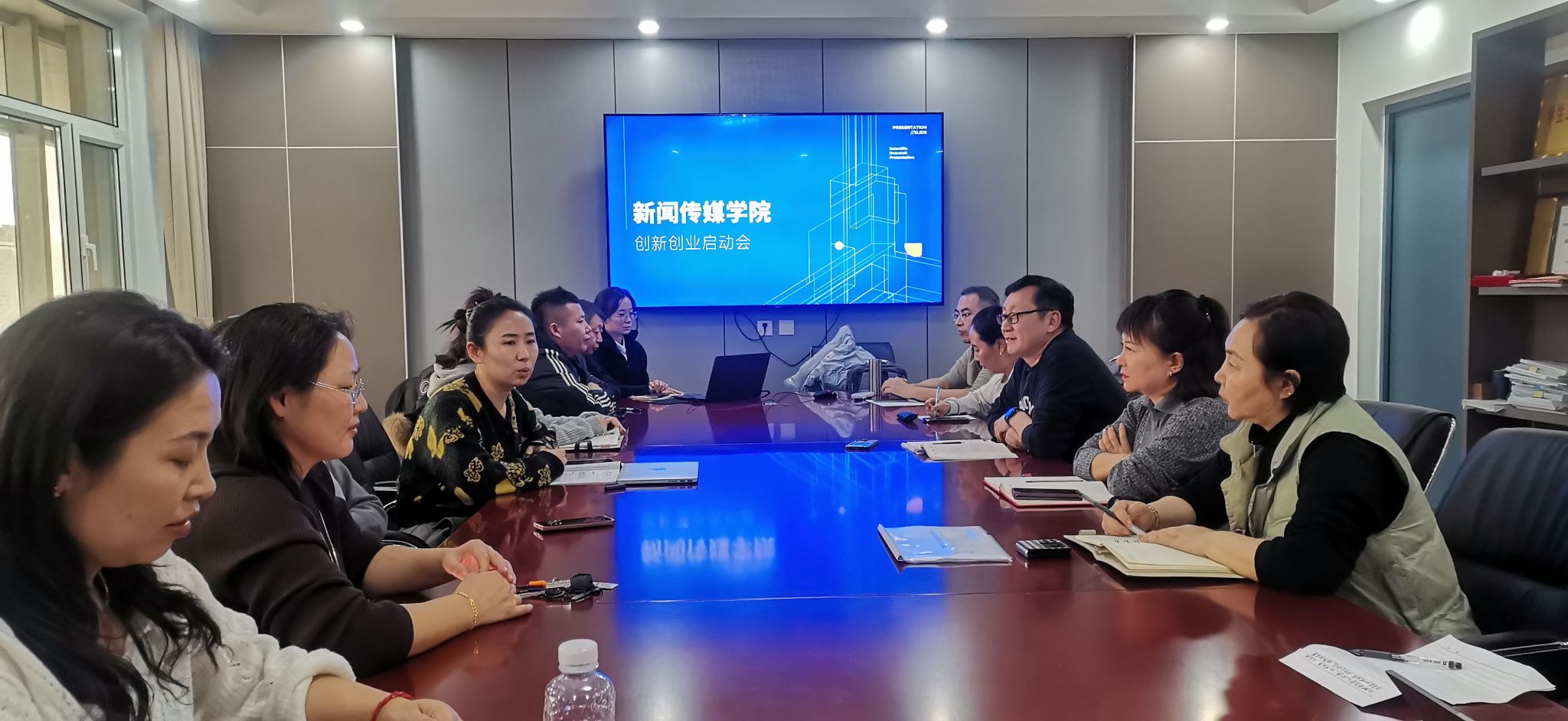为积极组织参与2026年中国国际大学生创新大赛(以下简称“国创赛”),扎实推进学院创新创业教育工作,提升项目培育质量,进一步激发师生创新创业热情,新闻传媒学院于1月9日下午在都林楼519会议室召开大赛启动部署会。学院党总支书记苏伦高娃、院长额尔敦毕力格、副院长安迎春及全体教师参加会议。会议由党政办公室主任珠丽主持。