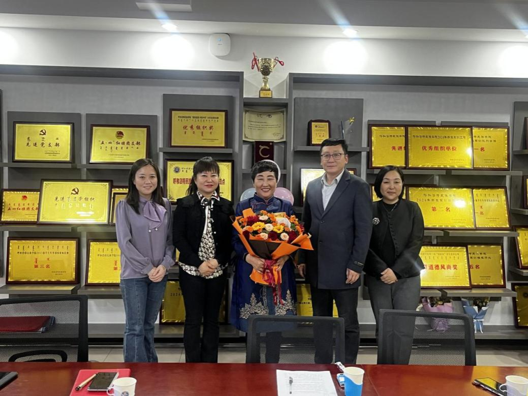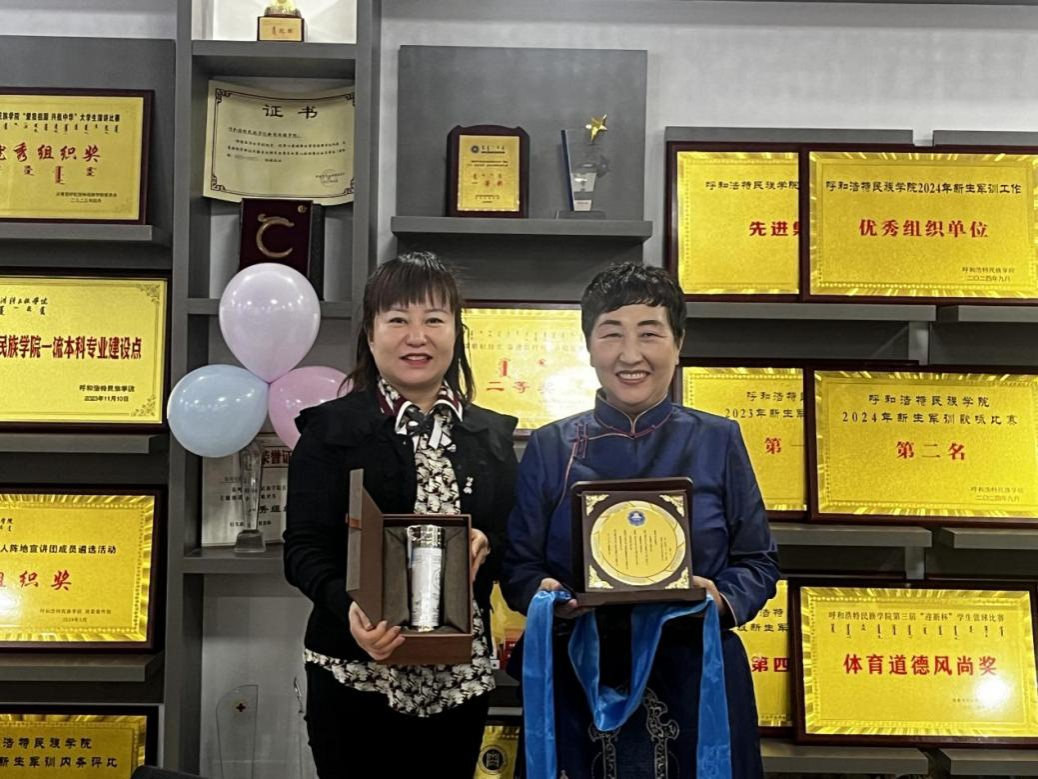随后,学院党总支书记苏伦高娃、院长额尔敦毕力格为白塔娜教授颁发纪念奖章,表达对白塔娜教授的崇高敬意和诚挚祝福。