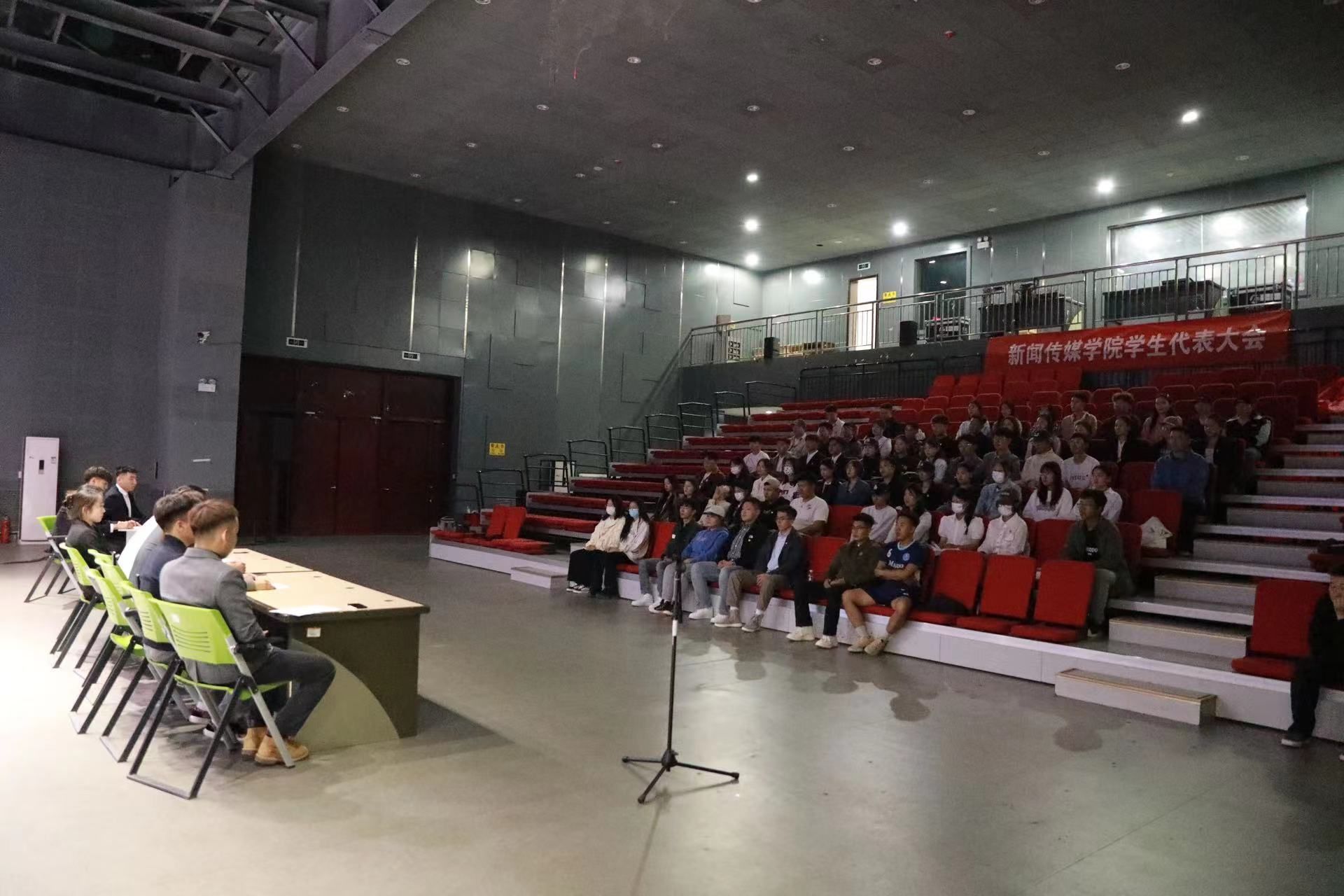 为更好地服务同学,促进各项学生事务全面发展,9月26日,新闻传媒学院在演播厅举办学生代表大会。会议在学校党委和团委的指导下进行,由伊如汗同学主持,全院76名学生代表参会。大会共有六项议程,会前由主持人为大家详细讲解学代会的目的,从而让参会学生代表都能更好地参与其中。