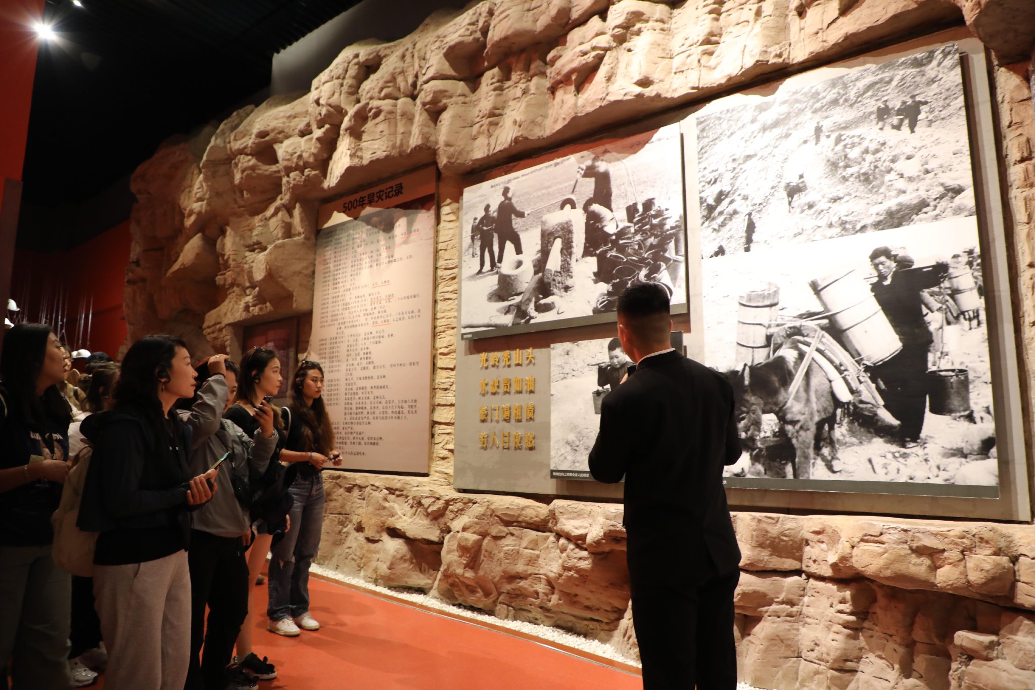 第三站同学们前往红旗渠青年洞。红旗渠青年洞工程,是当年从全县民工中抽调出来的300名优秀青年经过1年5个月的奋战建设而成,故取名为“青年洞”。同学们身临其境想象当年300余名优秀青年热火朝天的工程场面,切实感受到红旗渠工程的艰辛与磨难,辉煌与伟大,深刻领略到时代赋予青年们的使命。