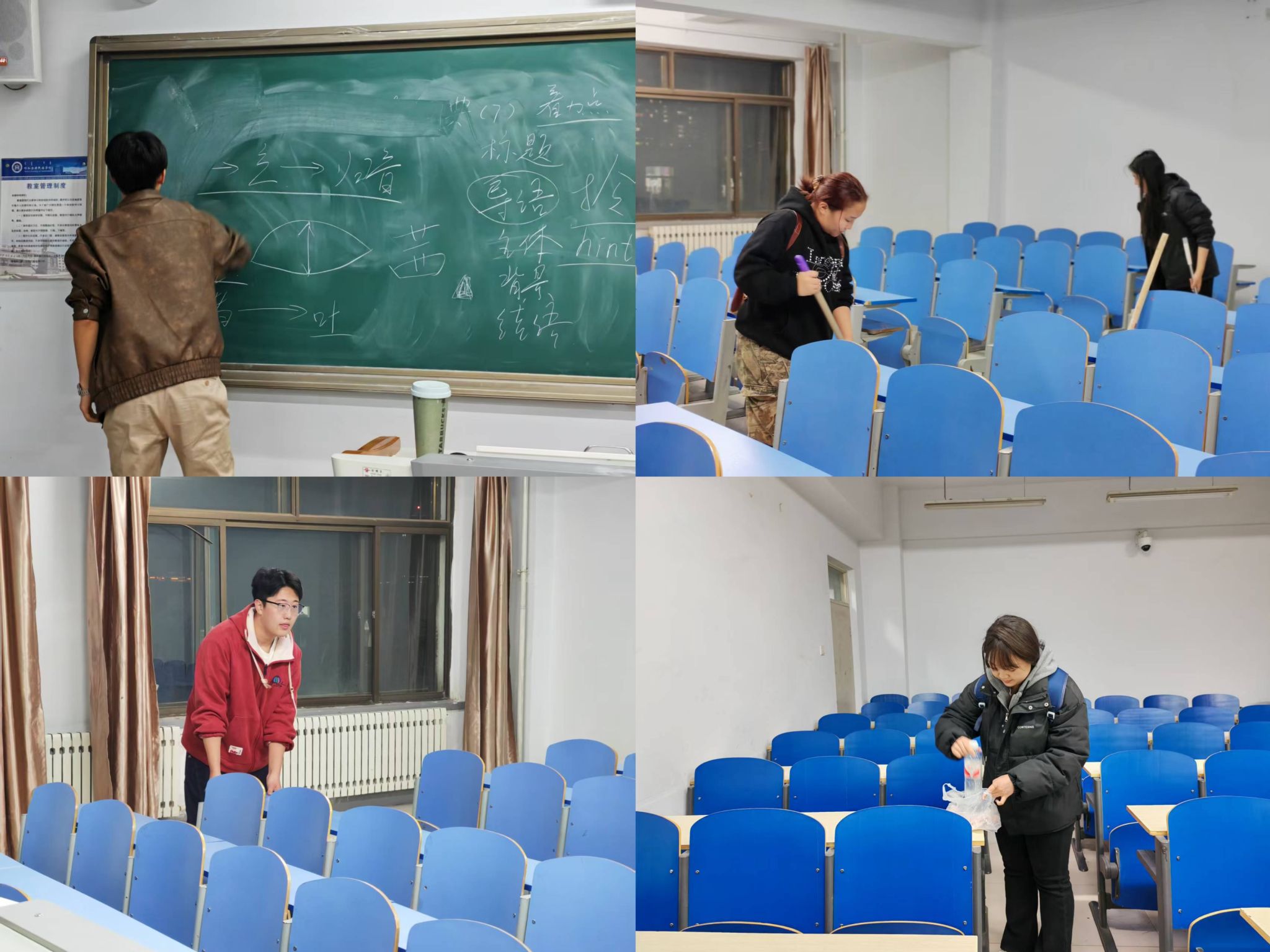 3月18日,新闻传媒学院组织大一各班开展劳动教育活动,对学院专用教室、实训场所等进行了全面清扫。 活动中,学生们分工协作,认真擦拭桌椅、整理设备、清扫地面,以实际行动美化学习环境。通过实践,同学们不仅提升了劳动技能,更增强了团队协作意识与责任感。大家纷纷表示,劳动教育让自身深刻体会到“劳动最光荣”的意义,未来将以更积极的态度投入学习和集体事务中。 劳动教育是人才培养的重要环节,学院将持续开展此类活动,引导学生树立正确的劳动观,弘扬踏实肯干的优良作风,助力学生全面发展。