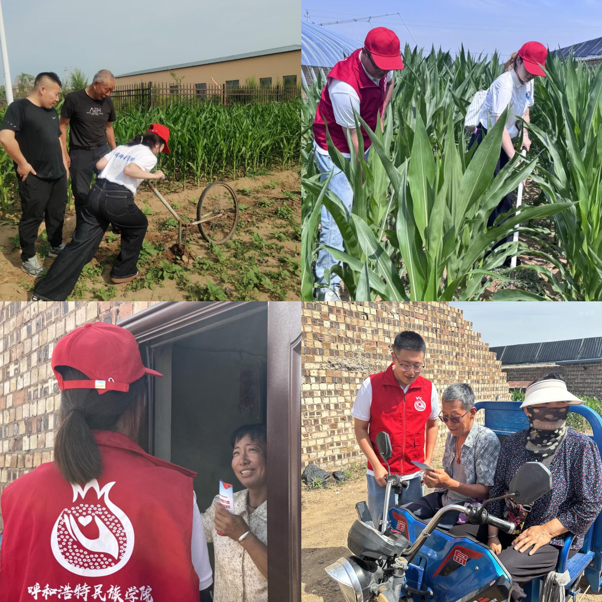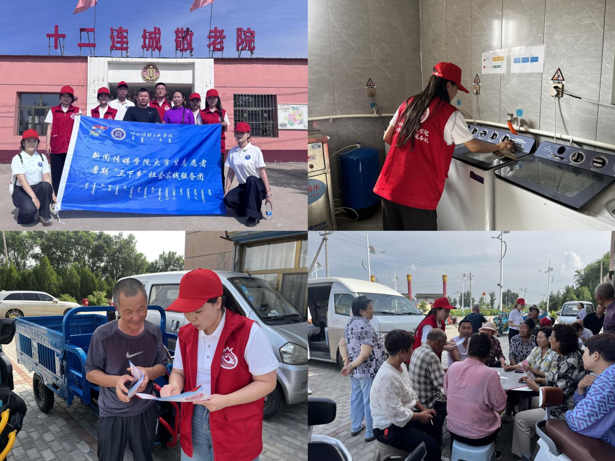 同日,实践团前往十二连城五家窑子村,开展普通话推广与助老关爱活动。成员们分工协作,为敬老院清扫卫生,与老人亲切交流,并深入村子各处,通过面对面讲解、示范交流等方式,向村民普及普通话日常用语,助力提升乡村语言文化水平。