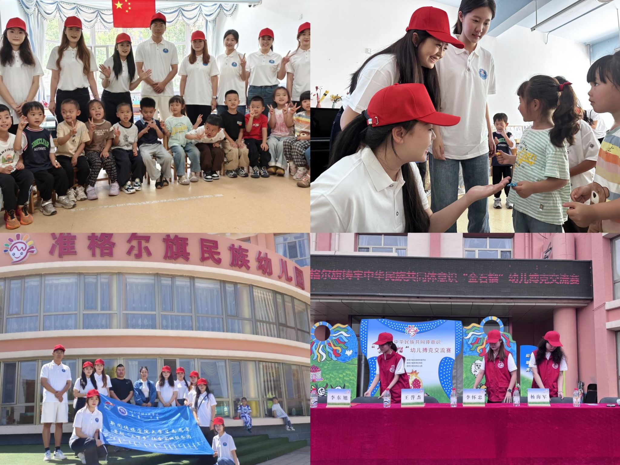 7月1日,实践团来到准格尔旗民族幼儿园,通过互动教学强化孩子们的普通话表达与应用能力,并借助“普通话+故事”的形式,引导其深入理解汉字文化内涵。当日,幼儿园举办“金石榴”幼儿搏克交流赛,实践团成员积极参与赛场布置,在推广普通话应用的同时也深入了解了搏克文化。
