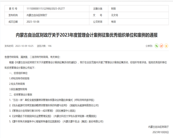 由内蒙古自治区财政厅开展的管理会计案例征集活动的结果日前揭晓,beat365官网财务处副处长徐多申报的案例《“五位一体”高校全面预算绩效管理体系推动业财融合新模式》,入选优秀管理会计案例,并位列第一。