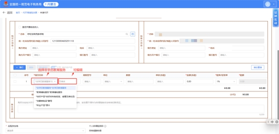 4.项目名称选择:非学历教育服务-评审费/讲座费等