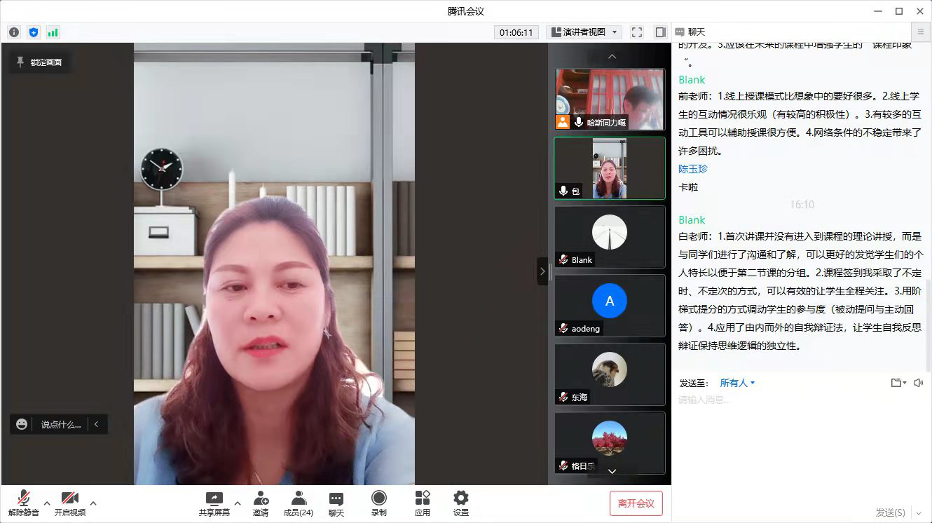 教研活动围绕如何提高《创新创业思维与训练》课程线上授课质量,老师们总结各自的教学情况和心得体会进行轮流发言,并就如何将《创新创业思维与训练》的特点与线上教学结合、实践教学环节如何有效实施、时间把控等问题,大家积极发言进行了深入探讨。接着化学与环境学院副教授包秀霞博士分享了《创新创业思维与训练》课程的第五块内容“疯狂被子原则”。