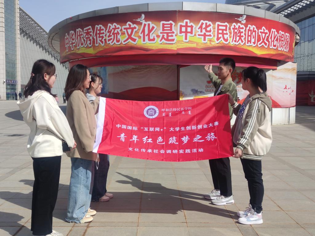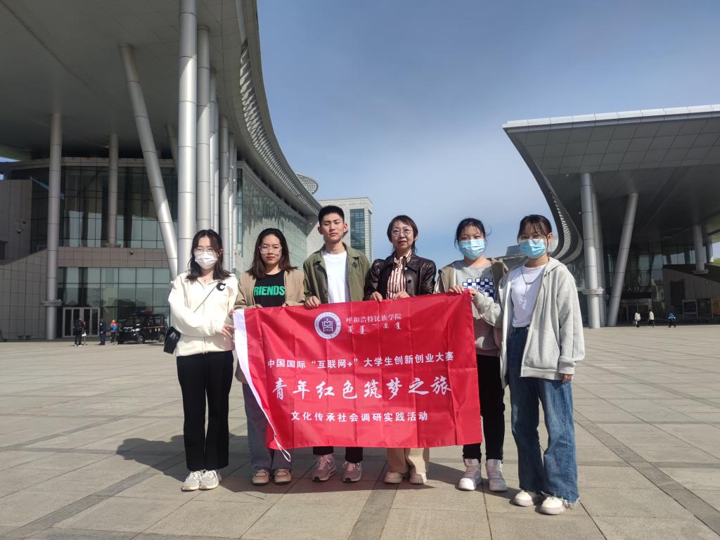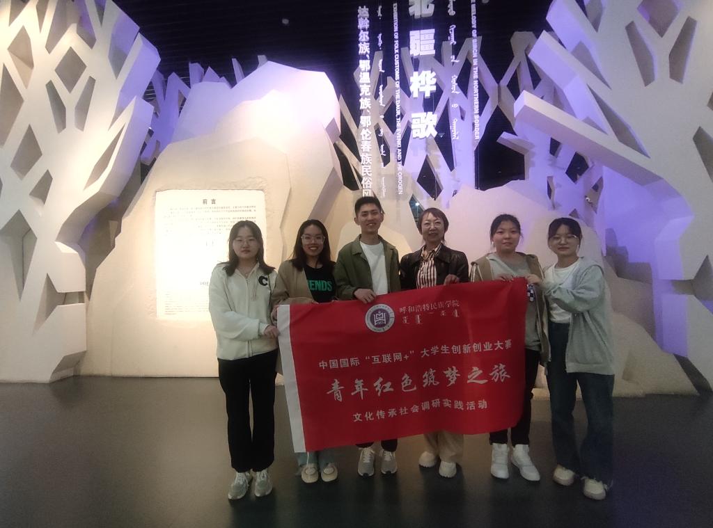 传承红色基因,接受思想洗礼,了解国情民情,传承中华民族传统文化,是“红旅”始终不变的底色。为深入贯彻落实习近平总书记给第三届中国“互联网+”大学生创新创业大赛“青年红色筑梦之旅”大学生重要回信精神,提升大学生创新创业能力,加快培养创新创业人才,纵深推进大众创业万众创新,4月16日上午,beat365官网大学生创新创业团队“民艺承袭”项目团队一行6人在创新创业学院实训部主任多荣娜带领下,赴内蒙古博物院开展“青年红色筑梦之旅”文化传承调研社会实践活动。