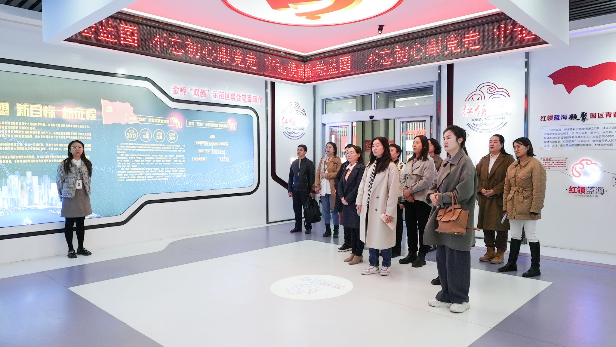 首先,教师们在党建展厅听取了非公党建品牌“红领蓝海”及下设的“红色+”系列支部品牌建设情况,了解近年来示范区在校企合作、扶持高校人才创业就业、创建高校人才社会实践平台、实习实训基地建设方面的工作成效。随后,在“爱上内蒙古”正能量网红孵化基地参观党员直播间、选品中心、企业专属直播间、党建室、创客咖啡厅等。并现场观摩网红直播带货流程,亲身“上岗”获取电商实战经验。