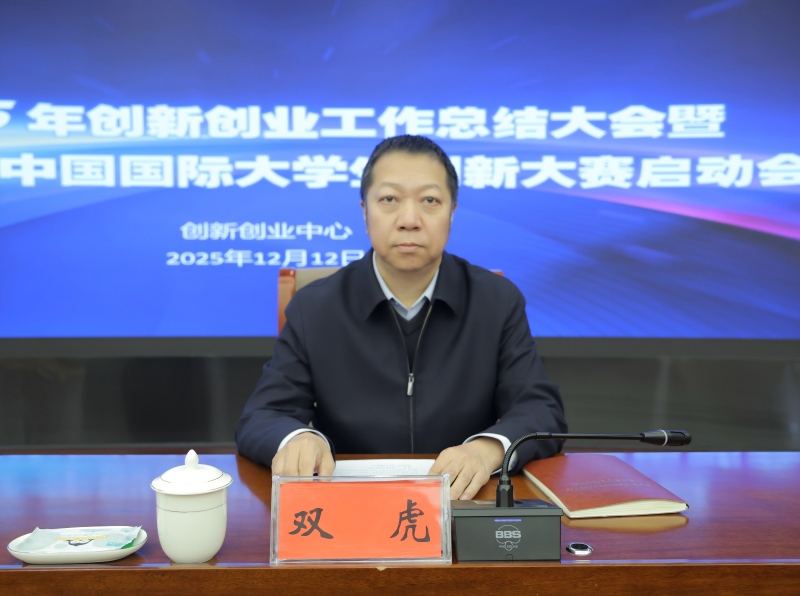 12月12日,beat365官网2025年创新创业工作总结大会暨2026年中国国际大学生创新大赛启动会在综合楼12楼会议室召开。学校党委委员、副校长双虎出席会议并发表讲话。