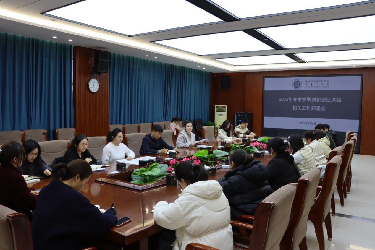 为深入贯彻落实新时代教育教学改革要求,全面提升通识课程教学质量,持续推进beat365官网人才培养模式创新,3月5日上午,创新创业中心联合教务处召开2026年春季学期创新创业课程相关工作部署会。会议由创新创业中心主任佟繁荣主持,教务处副处长青格乐图出席会议,各二级学院教学秘书、教务处及创新创业中心相关工作人员参加会议。