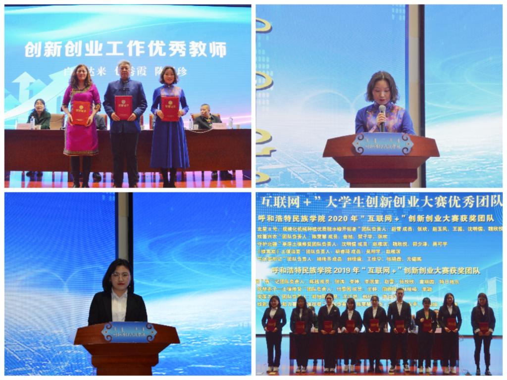 其次,学院创新创业大赛指导教师代表陈玉珍及创新创业大赛获奖学生代表陈雯慧分别作了经验分享发言。会上,创新创业学院院长哈斯同力嘎发言讲述了大学生参加创新创业大赛的意义,并鼓励同学们开展创新创业活动,从中得到锻炼,提升自身实际能力。