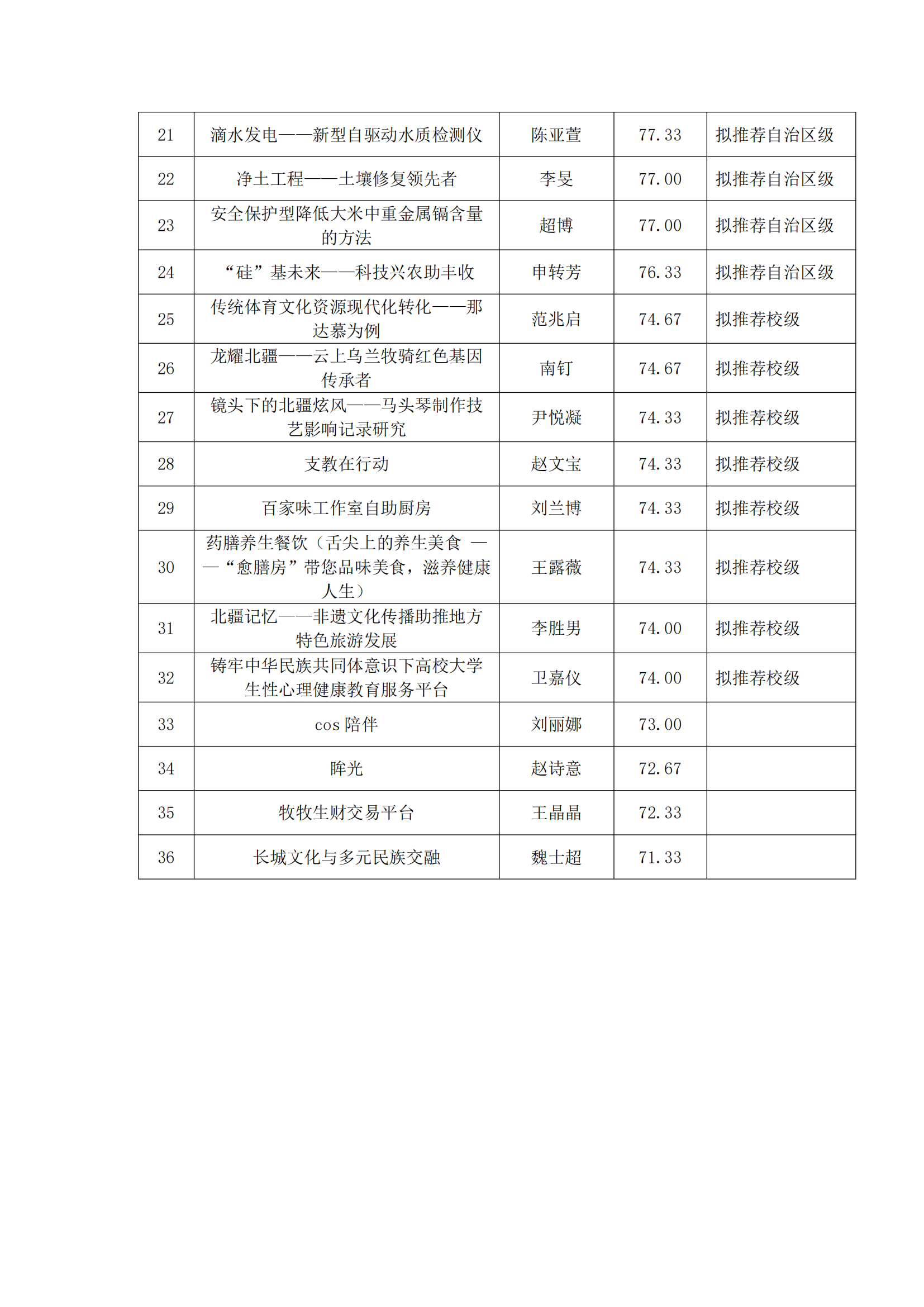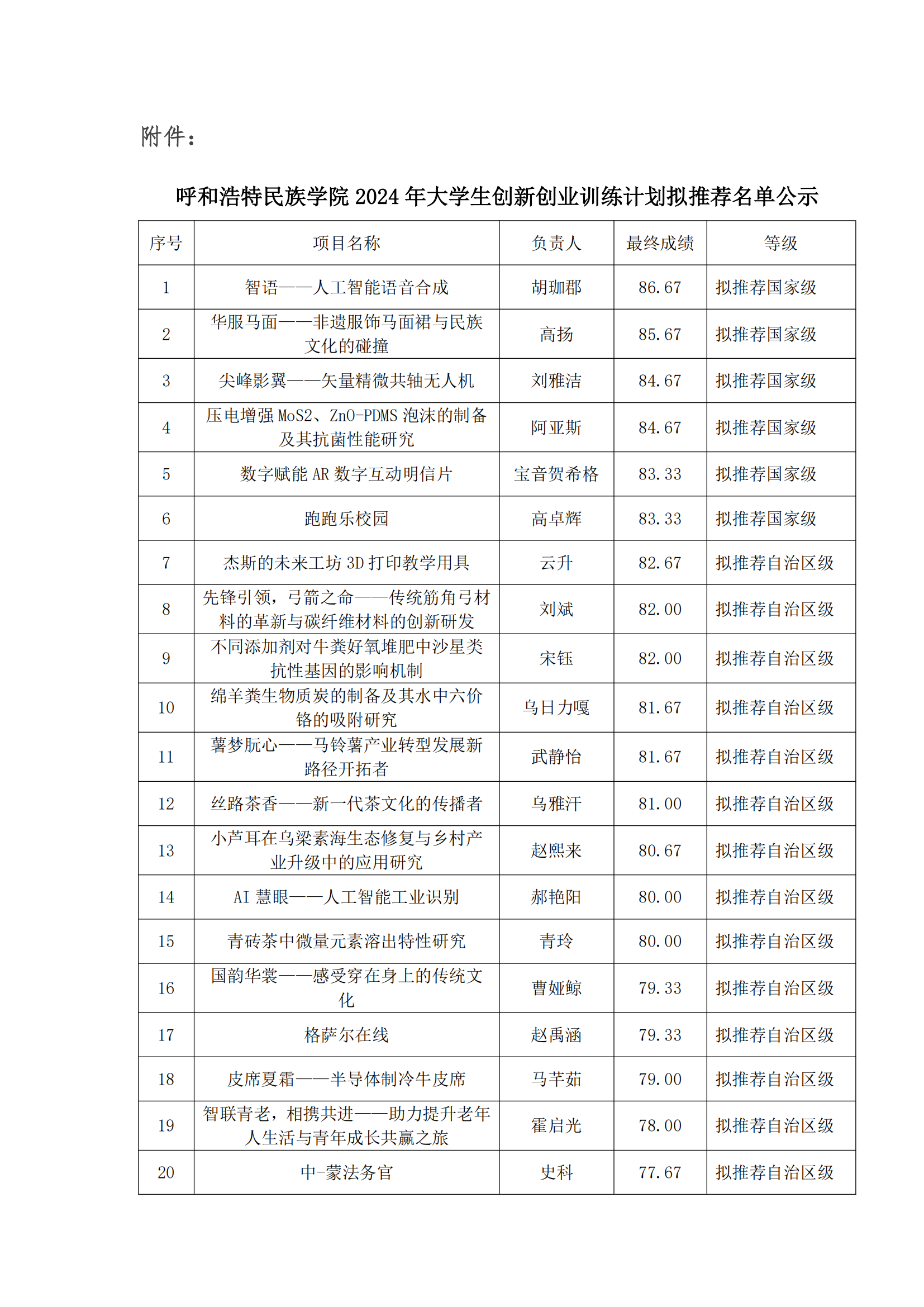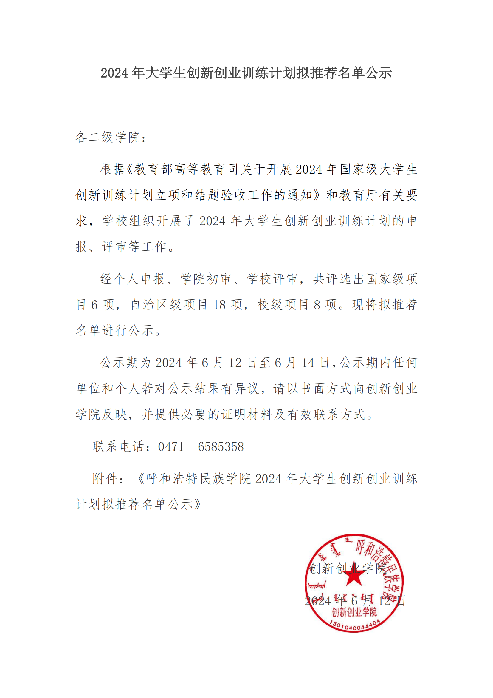 2024年大学生创新创业训练计划拟推荐名单公示