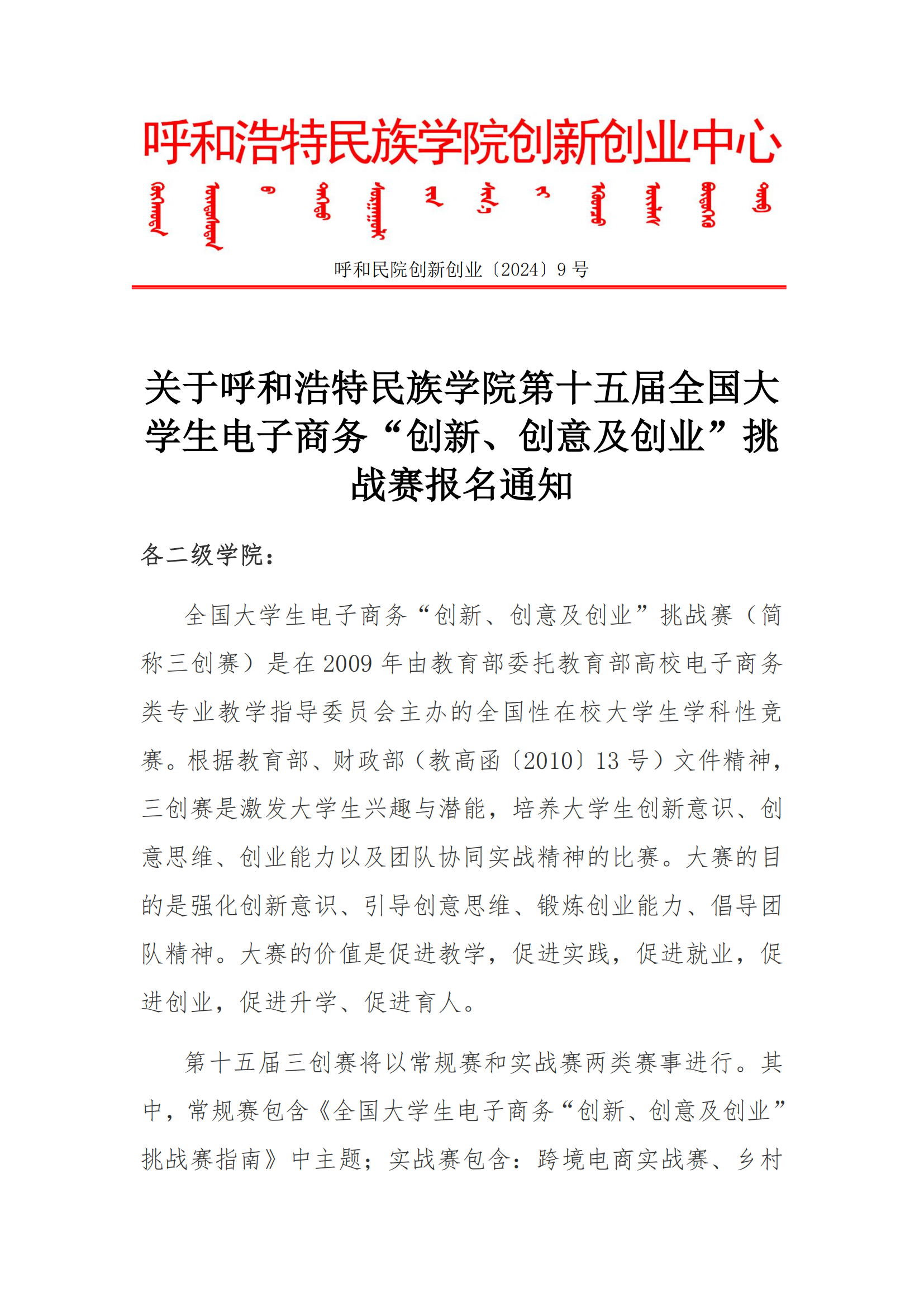 关于beat365英国官方网站第十五届全国大学生电子商务“创新、创意及创业”挑战赛报名的通知