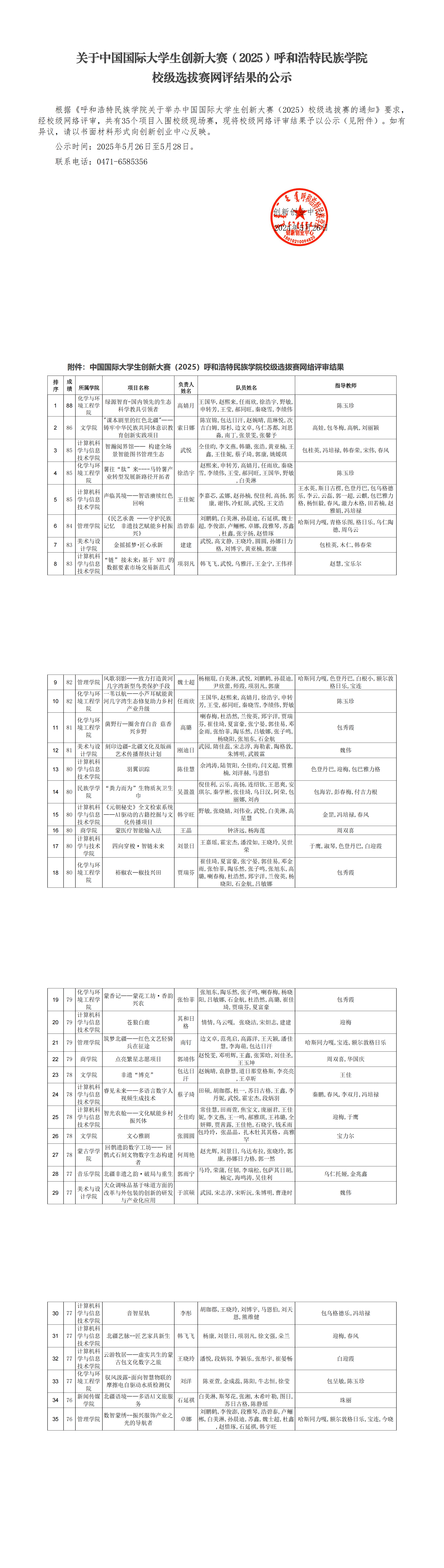 关于中国国际大学生创新大赛(2025)beat365英国官方网站 校级选拔赛网评结果的公示