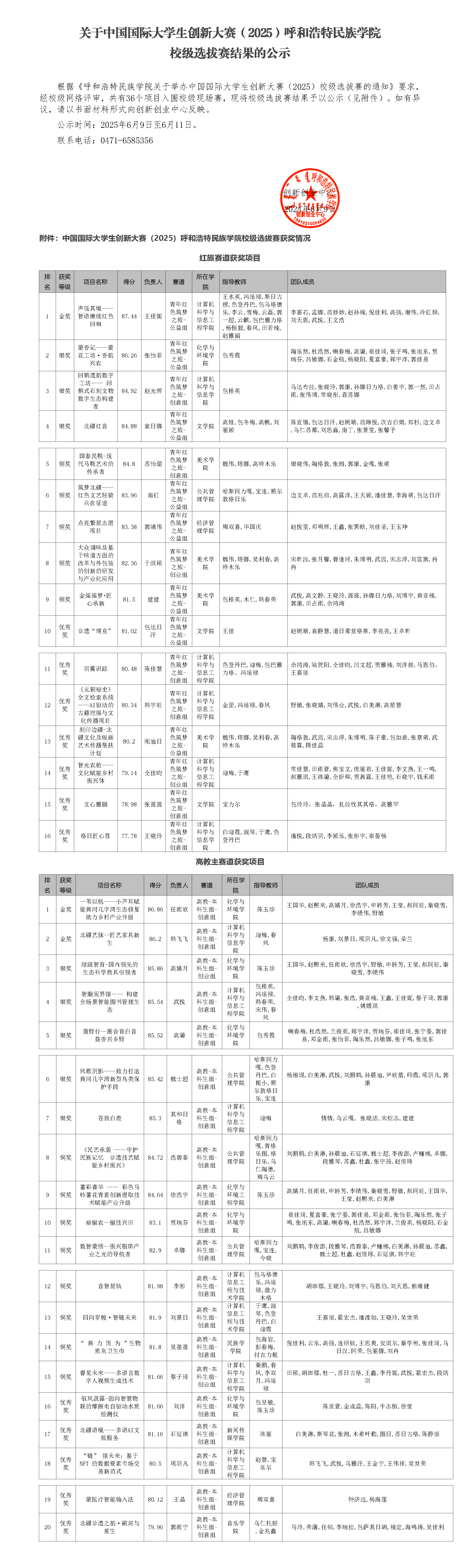 关于中国国际大学生创新大赛(2025)beat365英国官方网站校级选拔赛结果的公示