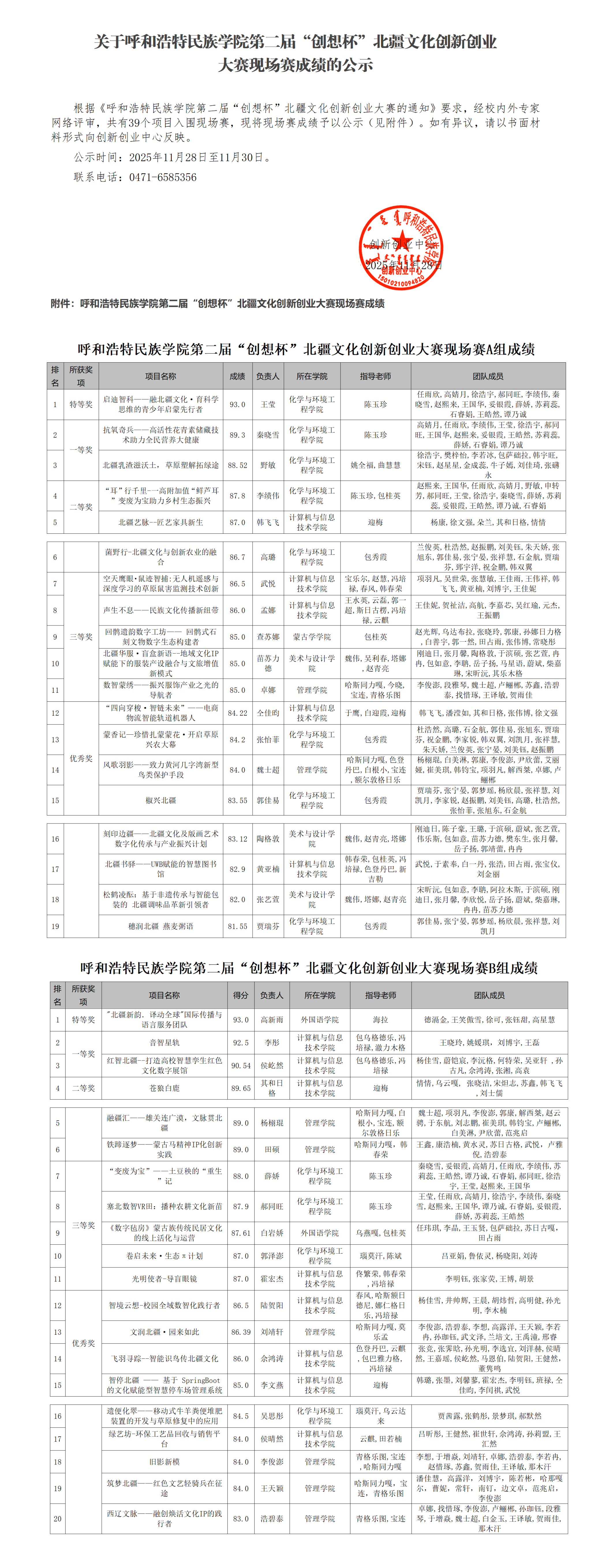 关于beat365英国官方网站第二届“创想杯”北疆文化创新创业大赛现场赛成绩的公示