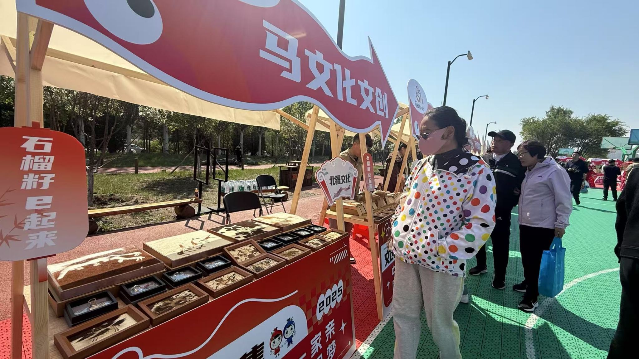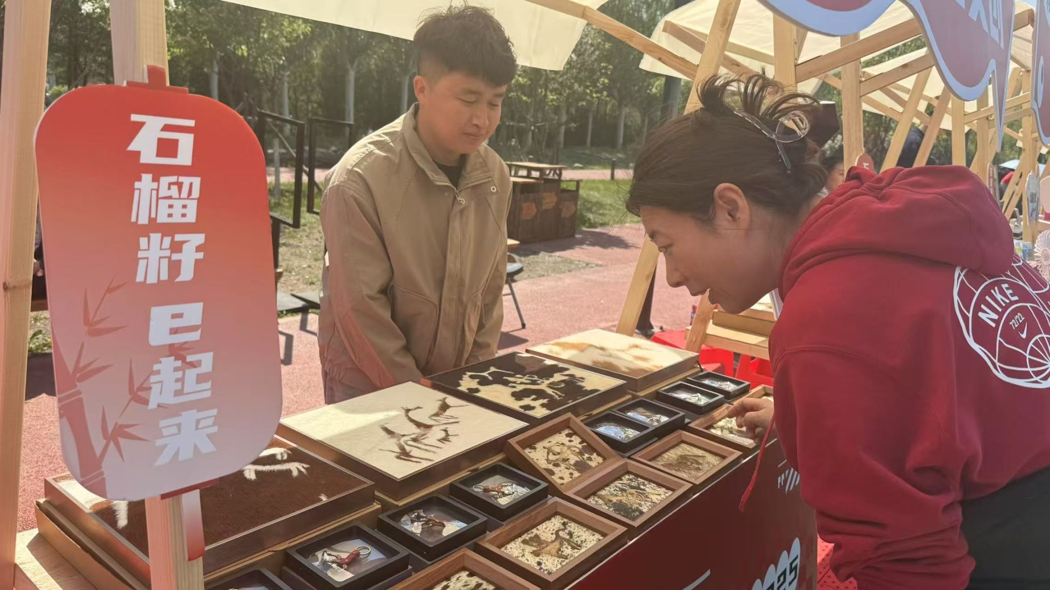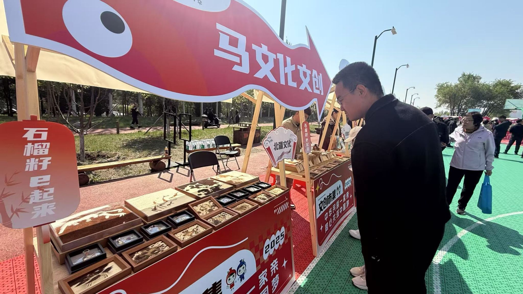 活动期间在公园一侧开展文创市集区,汇集各类北疆文化文创产品。学校展陈专区展出了beat365官网美术与设计学院党外知识分子、留学归国人员、非遗传承人制作的毡画、皮画、金银措工艺品等具有代表性的各色非遗文创产品,充分展示了学校在中华优秀传统文化创新性发展的成果。