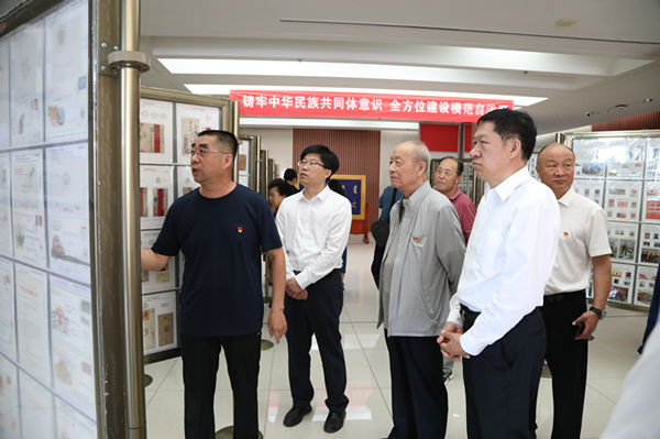 为迎接建党102周年,推动学习贯彻习近平新时代中国特色社会主义思想主题教育走深走实,有形有感有效铸牢中华民族共同体意识,学校党委统战部联合海拉尔路街道党工委、内蒙古邮政分公司集邮文化传媒部、内蒙古老干部活动中心党总支、内蒙古老干部中心集邮协会,在北区图书馆二楼举办“中华民族大团结”主题集邮展览。国务院参事室特约研究员,曾任中纪委驻交通运输部纪检组组长、原自治区党委副书记、中华全国集邮联合会第七届理事会会长杨利民亲临现场。学校党委书记刘九万,党委副书记、校长韩伟新,党委委员、统战部部长包君,党委委员、党政办公室主任朝格吉乐图到场观展。学校各二级学院、各处级部门均组织师生参观了展览。