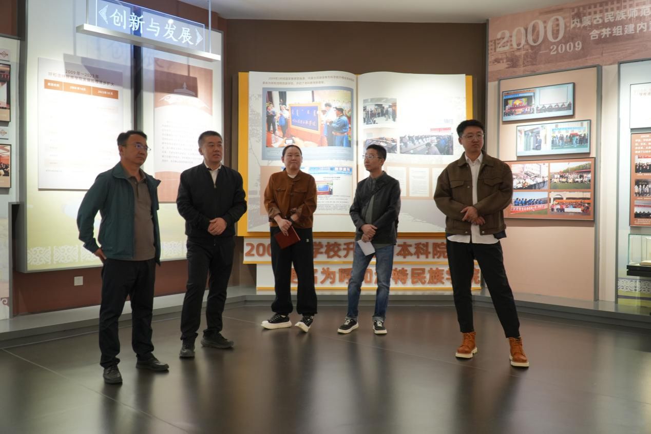吴凯一行参观了学校铸牢中华民族共同体意识教育馆、非遗展馆和校史馆,并就调研目的展开交流。