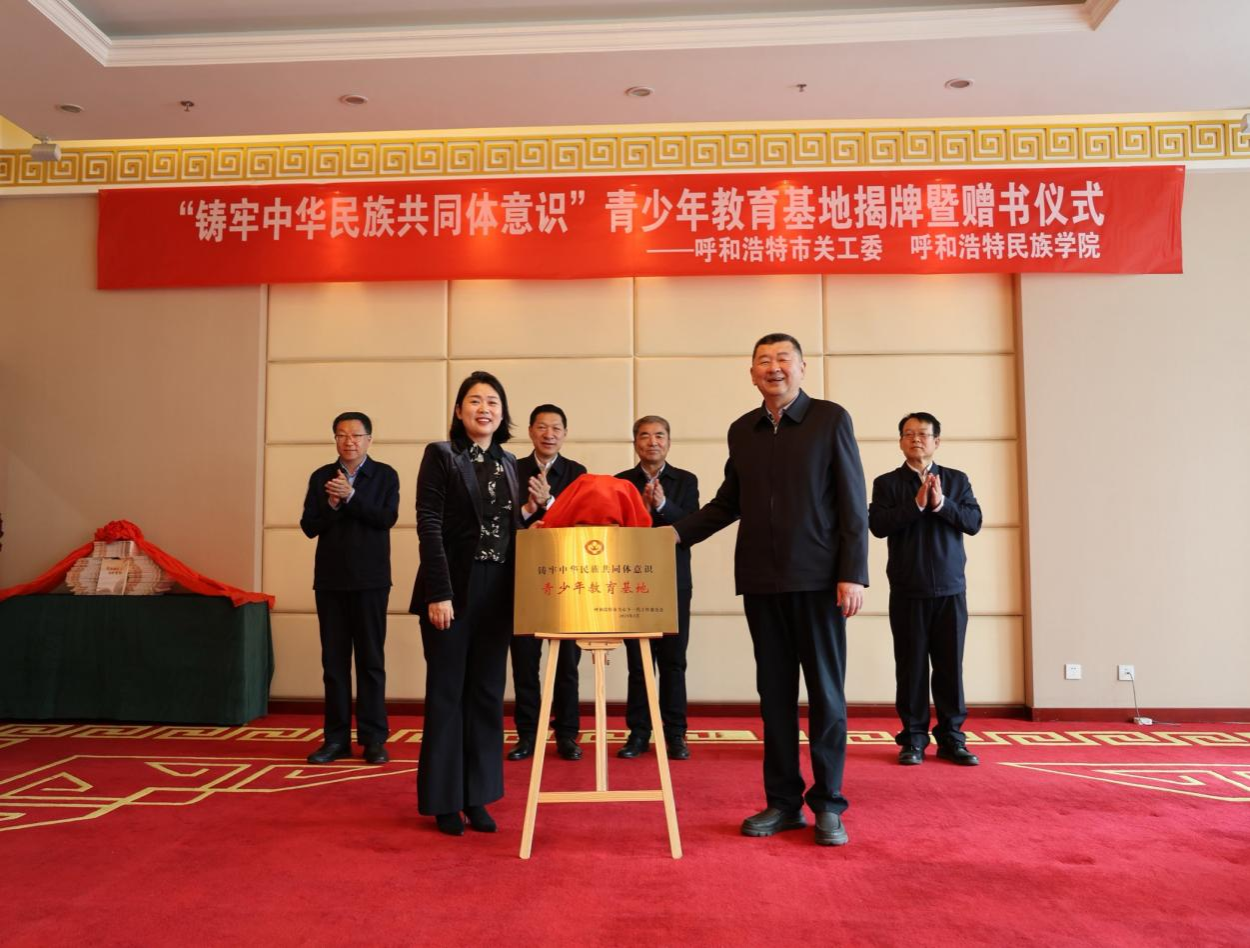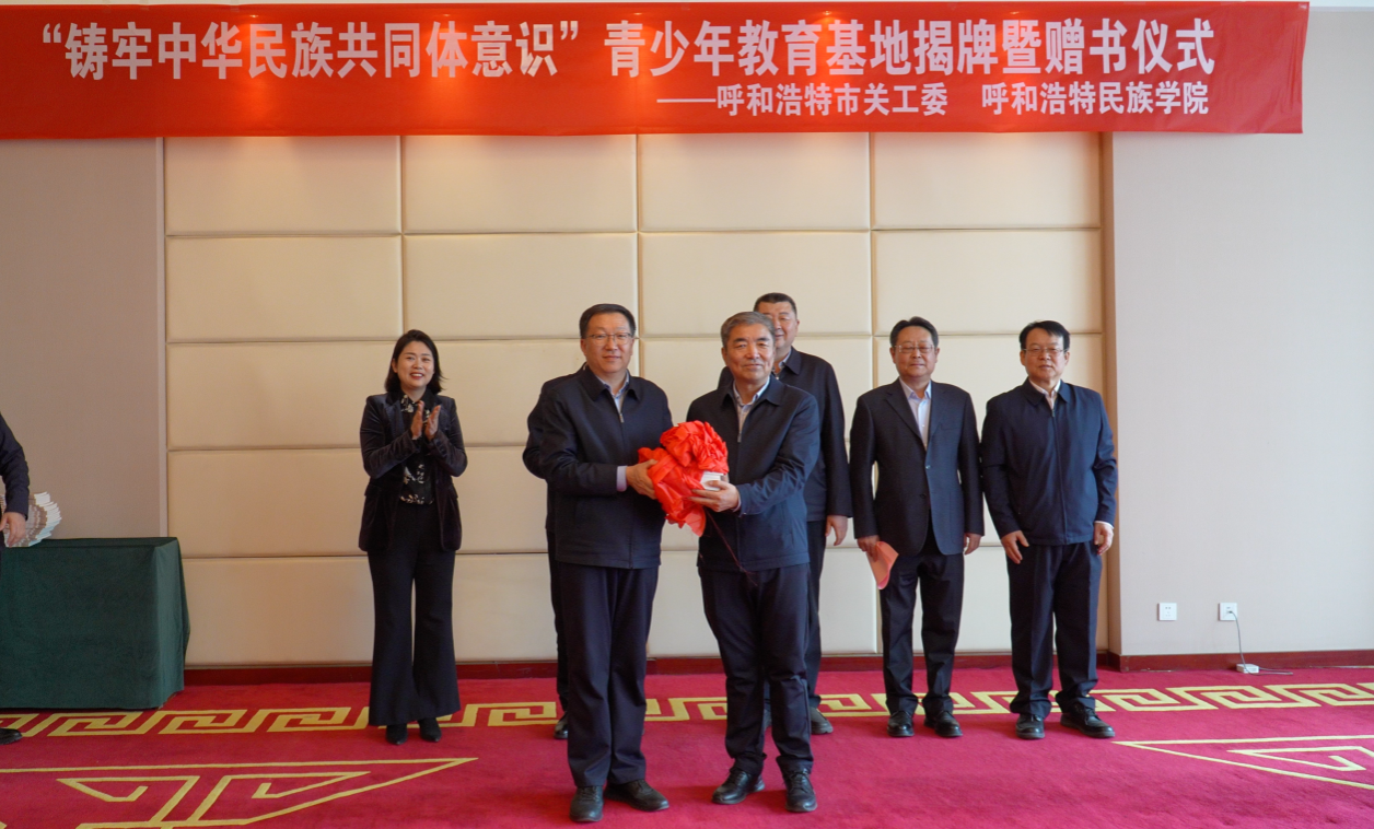 为推进大中小学思政课一体化建设,有形有感有效铸牢中华民族共同体意识,发挥学校场馆育人作用,构建协同育人格局,3月25日下午,由学校党委统战部与呼市关工委联合主办的铸牢中华民族共同体意识系列宣教活动启动仪式在beat365官网举行。学校党委书记刘九万、党委副书记格根哈斯、副校长刘瑞鸿,呼市关工委常务副主任刚布和、副主任兼秘书长李抚沧、副主任李原、宣传信息部负责人殷俊海、顾问格日乐图出席。