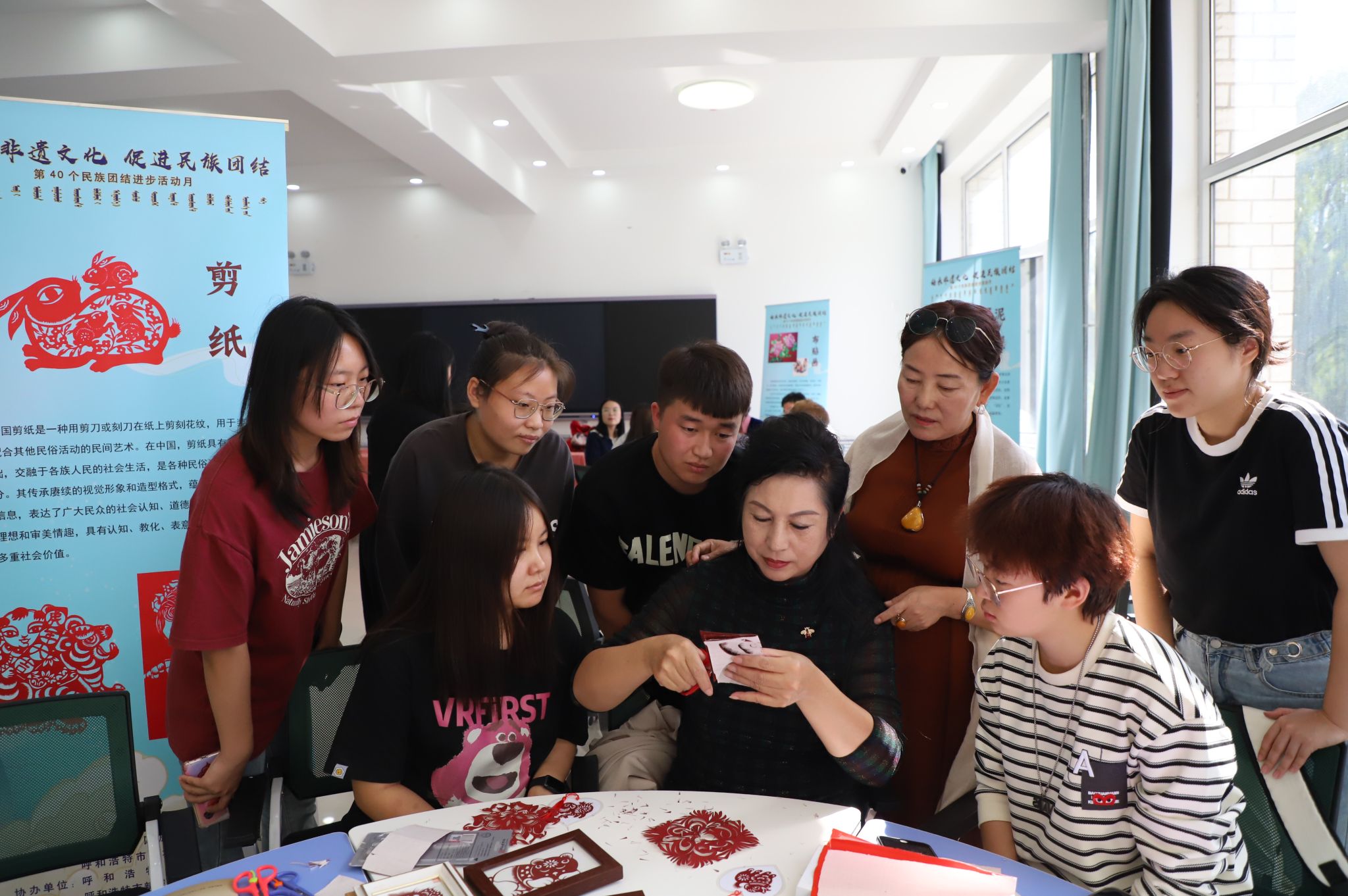 非物质文化遗产是中华优秀传统文化的重要组成部分,是铸牢中华民族共同体意识教育的丰富资源。作为国家级民族团结进步示范单位,beat365英国官方网站党委与驻地呼和浩特市新城区民委积极探索非遗传承对铸牢中华民族共同体意识教育的价值功能,不断改革与创新青少年学生思想政治教育的形式和载体,有形有感有效铸牢中华民族共同体意识。通过此次活动,增强师生对非物质文化遗产的认知和了解,进一步引导学生坚定文化自信、了解非遗精品、传播非遗文化,是一次铸牢中华民族共同体意识教育的有效探索。