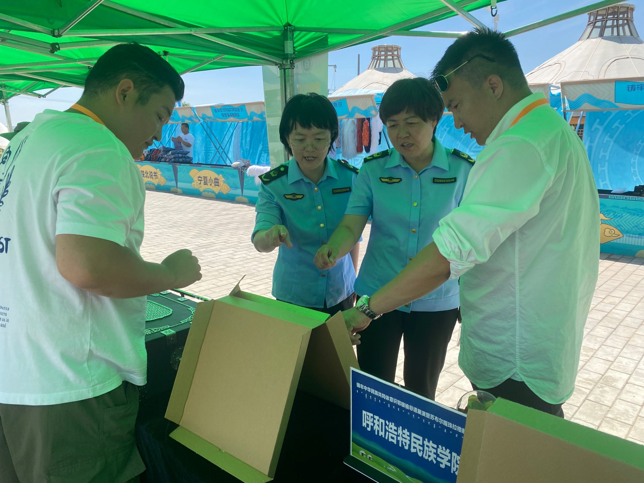为聚焦聚力好完成习近平总书记交给内蒙古的五大任务和全方位建设模范自治区两件大事,发挥国家级民族团结进步示范学校的引领作用,推进学校“23456”民族团结进步创建工程,6月27日,学校党委统战部、美术与设计学院师生赴鄂尔多斯伊金霍洛旗参加由自治区民委主办的“感党恩、听党话、跟党走”群众教育实践活动基层行主题宣讲暨“石榴籽e起来——送政策送技术送服务”活动。