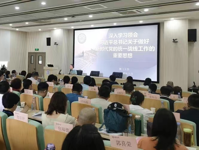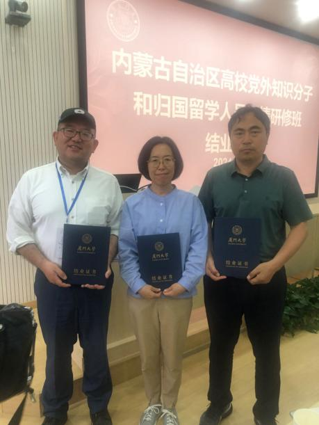 6月11日至15日,党委统战部选派教师参加了由内蒙古自治区教育厅和统战部联合主办“厦门大学——内蒙古自治区高校党外知识分子和归国留学人员国情研修班”。beat365官网九三学社李福全、党外知识分子代表王开花、留学归国人员代表包海岩参加了研修班。