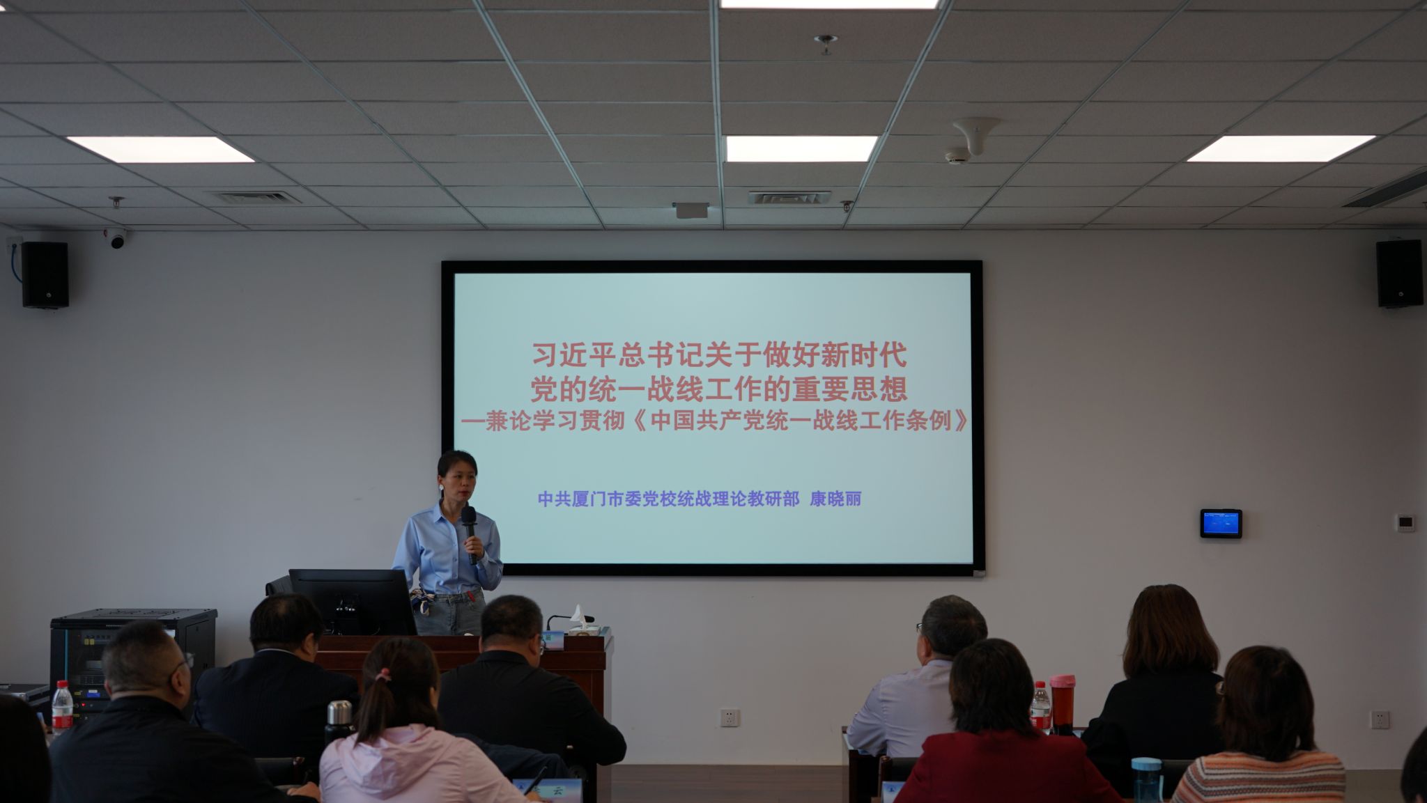 为深入学习贯彻习近平总书记关于做好新时代党的统一战线工作的重要思想和习近平总书记向欧美同学会成立110周年贺信精神,做好“凝心铸魂强根基、团结奋进新征程”主题教育活动,加强统一战线队伍建设,12月3日至12月10日,学校统一战线“两支队伍”培训班在厦门市湖里区委党校开班。学校党委委员、党委统战部部长包君带领统战干部队伍、党外知识分子代表和留学归国人员代表共24人参加培训。
