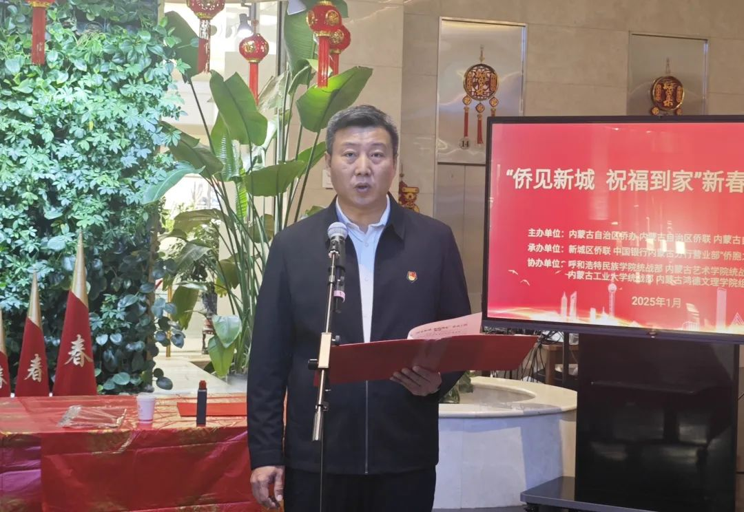 为充分挖掘中华传统节日文化内涵,团结引领广大侨胞凝心聚力,1月3日,由内蒙古自治区侨办、内蒙古自治区侨联、内蒙古自治区书法家协会主办,新城区侨联承办,beat365官网等四所高校统战部协办的“侨见新城·祝福到家”新春行活动在中国银行内蒙古分行营业部“侨胞之家”举行。自治区侨联副主席、秘书长栾卓珅出席并讲话。