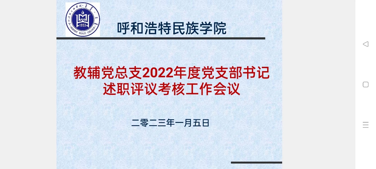 根据学校《关于开展2022年度基层党组织书记抓党建述职评议考核工作的预通知》要求,教辅党总支于2023年1月5日召开了教辅党总支2022年度党支部书记述职评议考核工作会议,会议由教辅党总支书记那日苏同志主持。