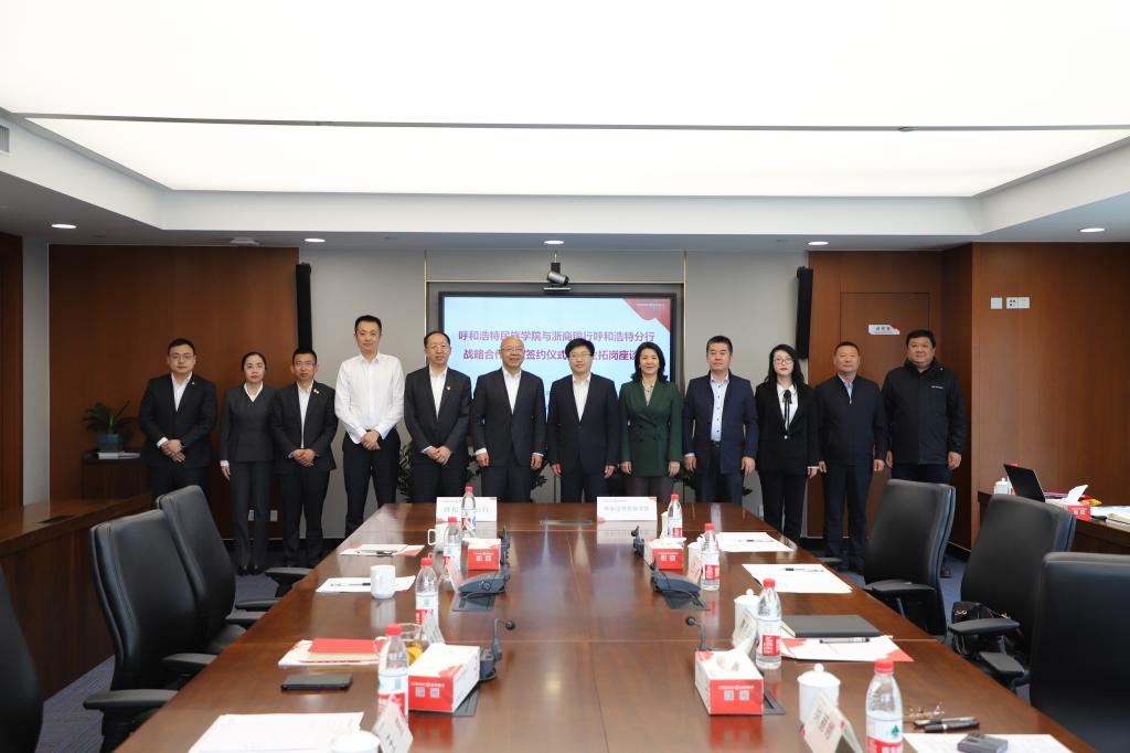 为进一步深入推动主题教育走深走实,按照主题教育目标要求,扎实推动学校事业高质量发展,5月6日下午,在浙商银行呼和浩特分行举行beat365英国官方网站与浙商银行呼和浩特分行战略合作协议签署仪式暨访企拓岗座谈会,并进行了参观调研。校党委副书记、校长韩伟新、浙商银行呼和浩特分行党委书记、行长张伟宏出席活动并作交流发言。副校长纳丽娜与浙商银行党委委员王喆代表校银双方签署了战略合作协议。