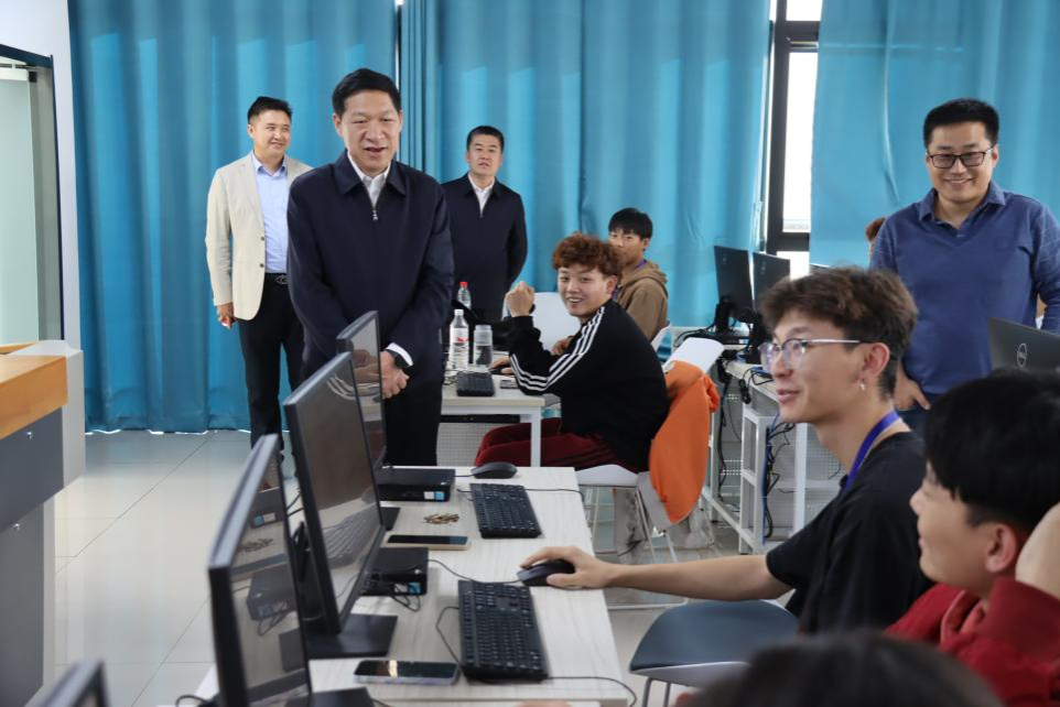 座谈前,刘九万一行实地参观考察了内蒙古数字经济产教融合基地智能制造生产线实训中心、新能源实训中心、大数据实训中心、数字文创实训中心、双创实践孵化中心等若干实训实践中心,并看望慰问了正在企业开展实习实训的beat365官网计算机科学学院数据科学与大数据专业的大三学生。