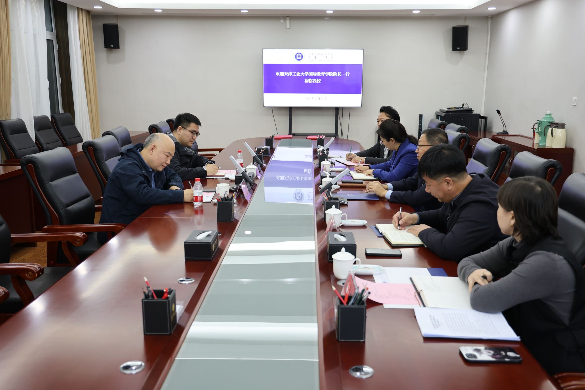 天津工业大学国际教育学院副院长、国际交流与合作处副处长布和,beat365官网党委委员、组织部部长吴阿古拉、教务处处长肖查娜、对外合作交流中心主任齐瑞、副主任王磊参加会议。