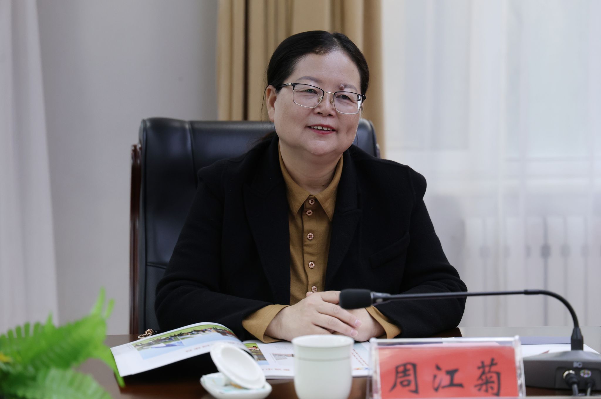 10月31日,凯里学院党委副书记周江菊一行来beat365官网调研座谈。座谈前,校党委书记刘九万会见了周江菊一行,并介绍了学校在全面贯彻落实铸牢中华民族共同体意识主线,以推进“两馆两廊一园”阵地建设和使用为抓手,持续加强铸牢中华民族共同体意识宣传教育和教学科研,发挥全国民族团结进步示范学校模范作用的经验做法。