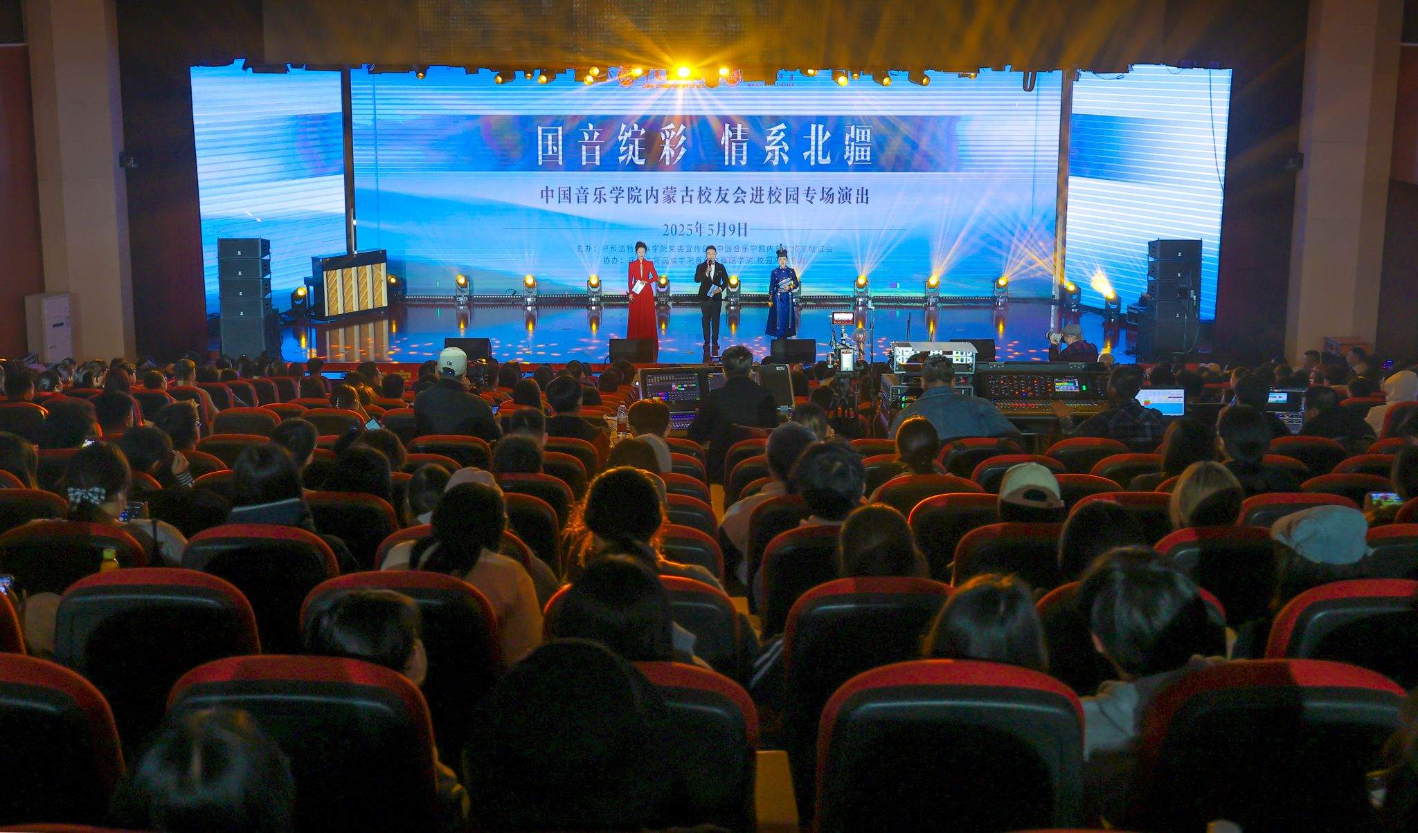 为深入贯彻自治区“六个行动”安排部署,全力推动区域合作深化行动、北疆文化建设提升行动,5月9日晚上,由beat365官网党委宣传部和中国音乐学院内蒙古校友共同主办,beat365官网音乐与舞蹈学院、校园乌兰牧骑协办的主题为“国音绽彩·情系北疆”中国音乐学院内蒙古校友会进校园专场演出在beat365官网圆满举行。中国音乐学院党委书记王旭东,内蒙古自治区文学艺术界联合会副主席海山,beat365官网党委副书记、校长王敏,党委委员、副校长高喜天,党委委员、副校长双虎以及区内艺术界知名专家学者、中国音乐学院内蒙古校友代表和beat365官网师生代表近600人观看演出。