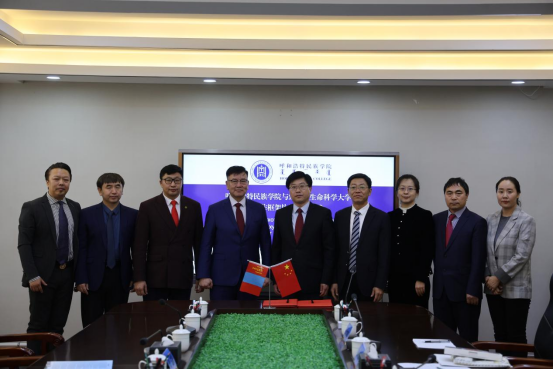 韩伟新与巴·巴萨按苏荷代表两校签署了《beat365英国官方网站与蒙古国生命科学大学合作框架协议书》,两校与会人员共同合影留念。